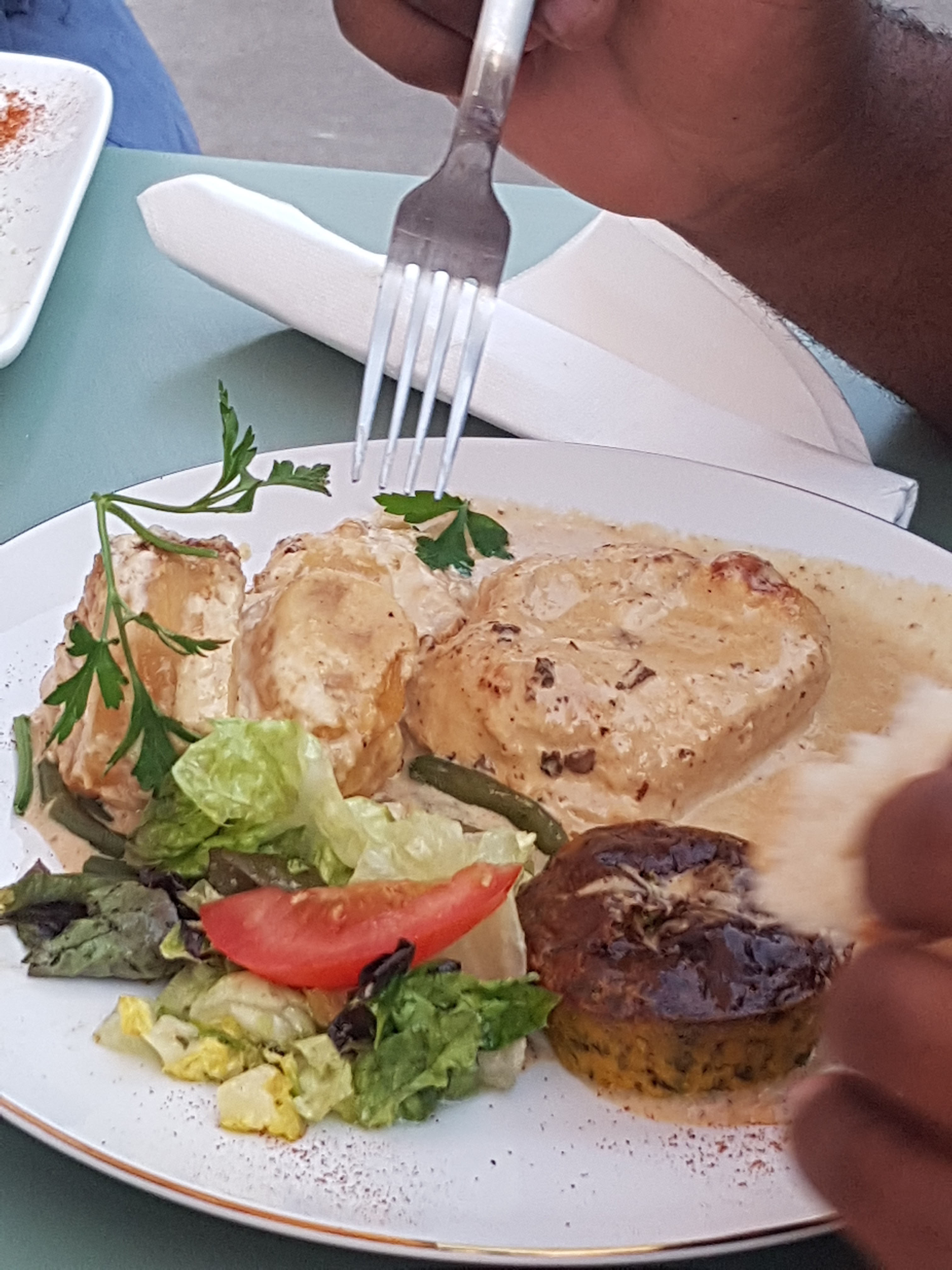 Nous avons eu les brochettes d'agneau avec gratin de pommes de terre et le tajine de bœuf avec couscous. Ils étaient délicieux. En fait, j'aurais aimé que ma bouche soit plus grande, c'était tellement bon. Si vous êtes dans le coin, arrêtez-vous pour un dîner ici. Vous ne serez pas déçu.