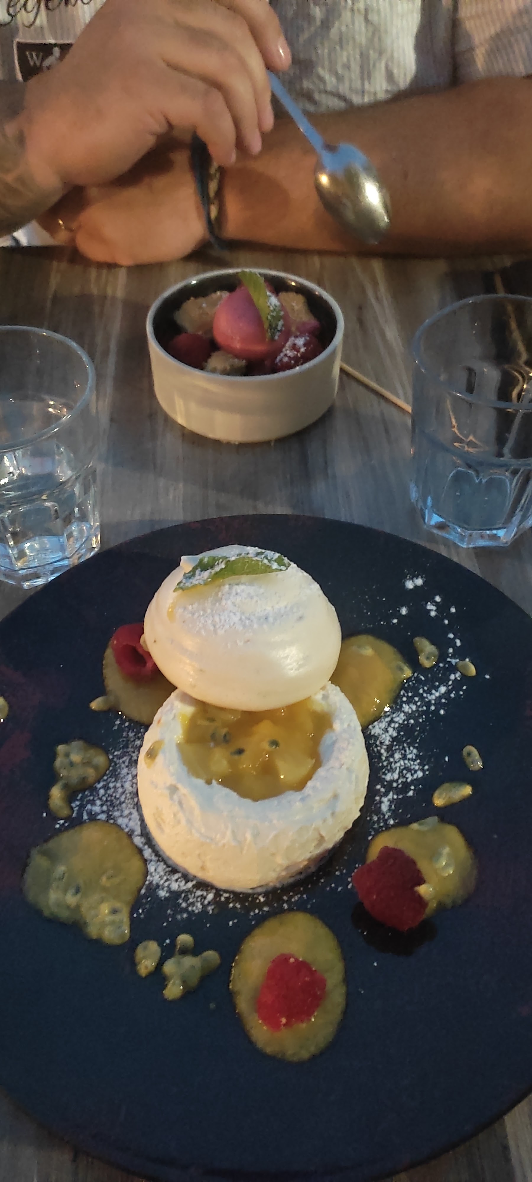 Accueil très chaleureux Ceviche excellent Agneaux exquis Et un pavlova top Top a conseiller mais pas trop qu on y trouve une table quand on reviendra de notre Bretagne