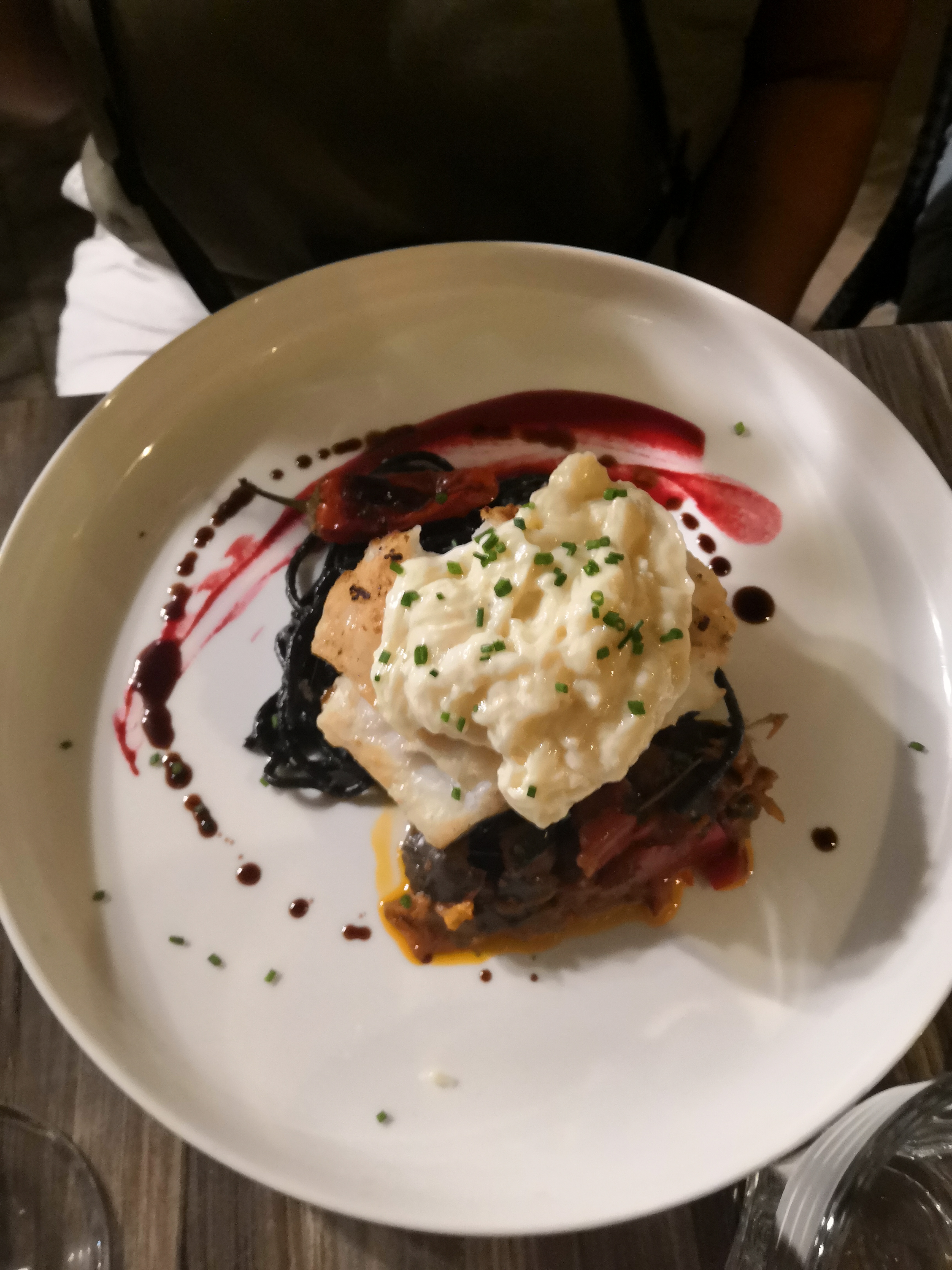 Très bien accueilli sans réservation À deux nous avons partagé un plat de cabillaud accompagné d'un riz noir (camarguais?) avec une sauce tomate et un second plat de risotto aux gambas. Le tout était délicieux En dessert, une tarte aux noix accompagnée d'une boule de glace Madame étant compliquée, elle a apprécié ce qu'elle n'aime pas en temps normal et le dessert qui ne lui faisait pas envie à fini plus dans son estomac que le mien Bref, très bien accueilli, personnel très humain et assiettes très bien travaillées