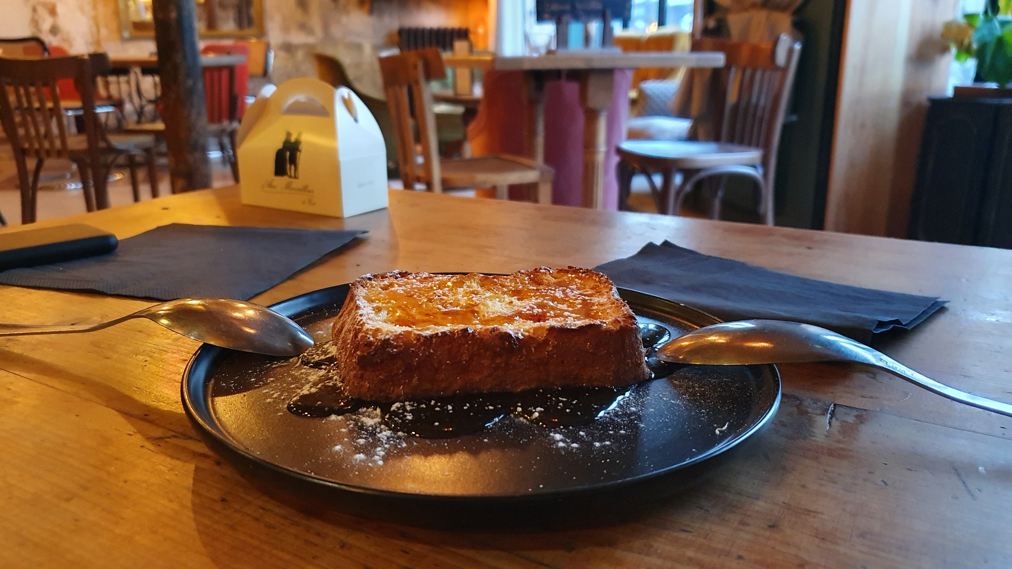 Cosy et bon ! Le tartare d'avocat est parfait, l'houmous maison et son pain pita également. Le pain perdu est croustillant et moelleux à la fois 👏 Cocktails également très réussi. Le personnel est très sympathique, et on y croise les comédiens des théâtres alentour. La décoration est également très réussie 👍 Un lieu qui serait volontiers mon QG si j'habitais le quartier 🤗