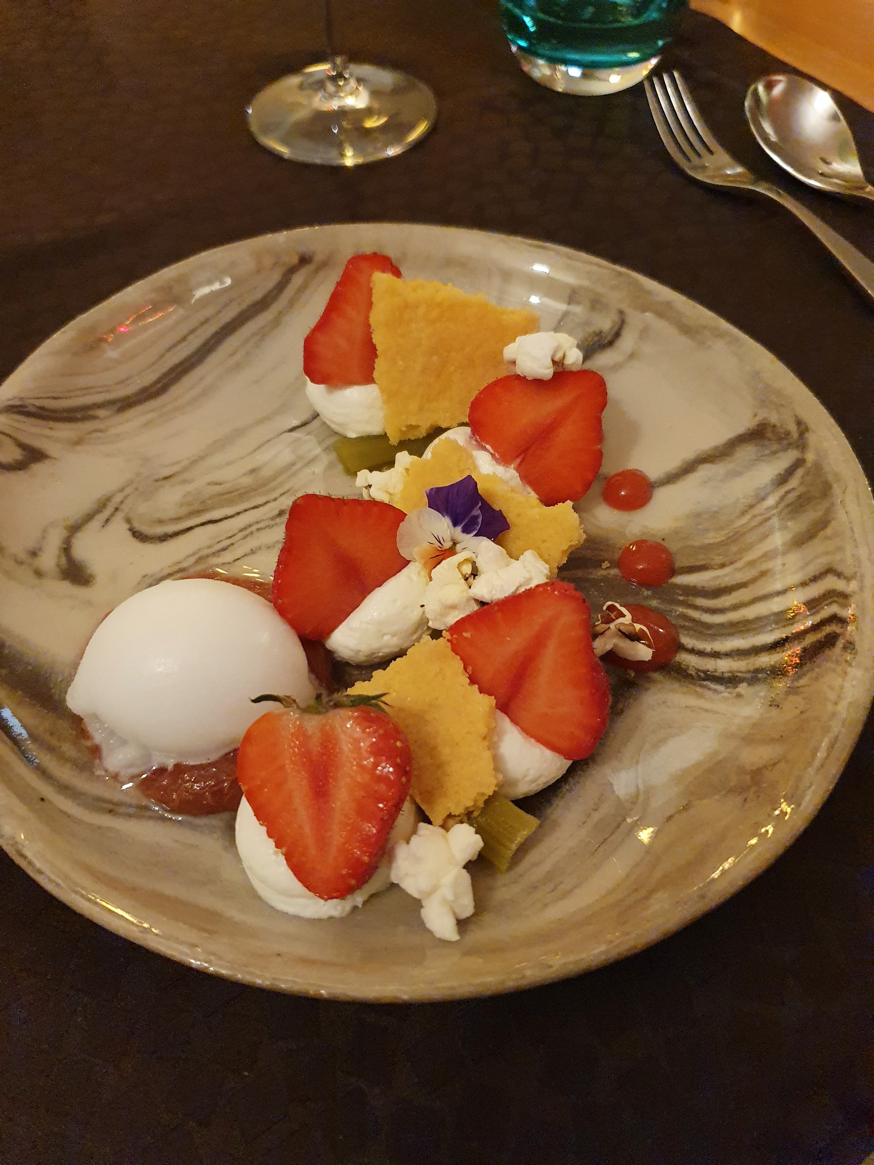 Un merveilleux déjeuner. L'hôtesse était extrêmement sympathique et cordiale. Il y a d'abord eu quelques snacks : en entrée j'ai eu un éclair salé, avec des crevettes, avocat, ricotta et espuma de bisque de homard. Ensuite j'ai choisi le plat avec du poulet et des gnocchis. Pour le dessert j'ai choisi la fraise par tous les moyens. Tout était bien expliqué et de nombreux produits locaux étaient utilisés. Chaque plat était magnifique et était très délicieux. Je reviendrai certainement ici!