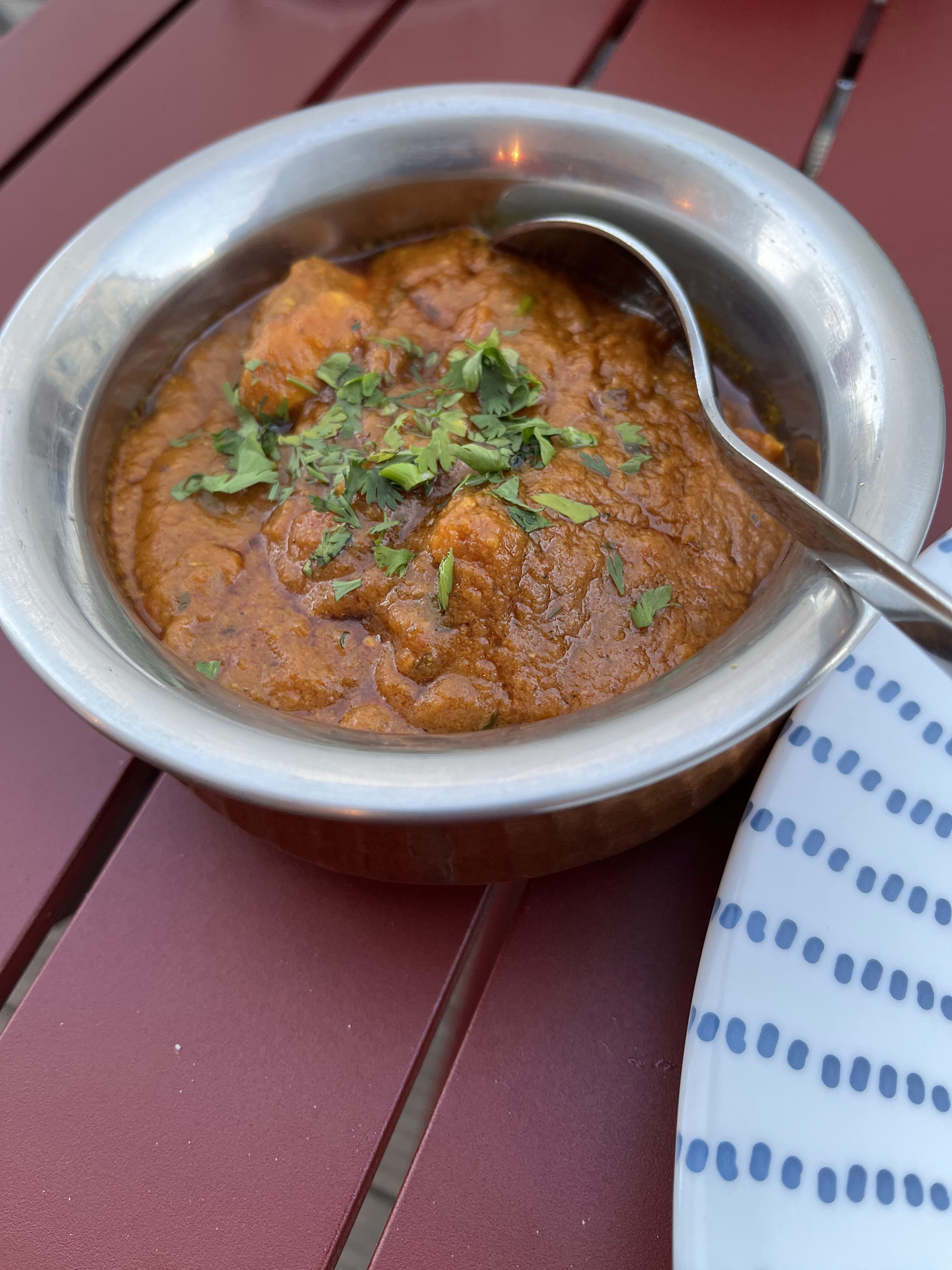 Je comprends pas la hype sur ce restaurant. On est très loins des saveurs de l'inde ou du Pakistan, c'est fade. Ambiance cantine. Bof.