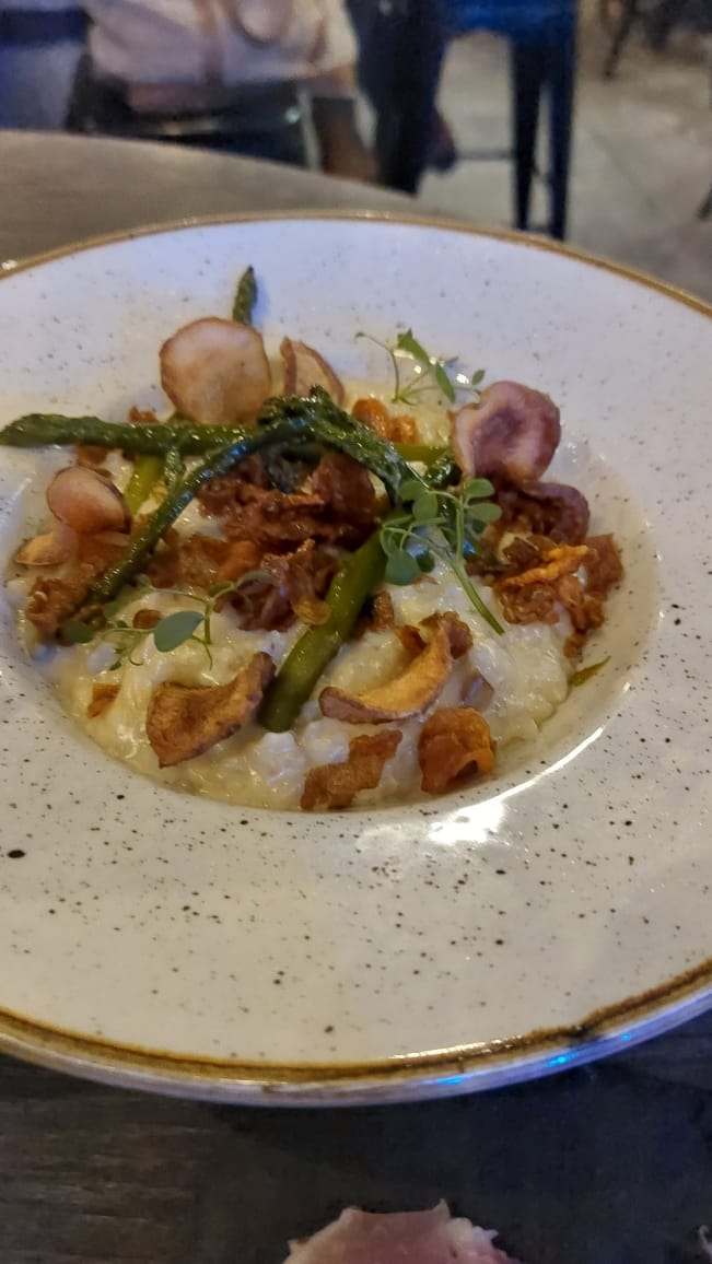 100% RÉPÉTERAIT. Nourriture spectaculaire, service spectaculaire. Le garçon qui nous a servi était très sympathique, a pris le temps de nous aider et de nous expliquer les plats en espagnol. Nous avons fini par commander le risotto aux asperges qui était à 10/10, le gravlax de porc qui était vraiment délicieux 10/10 et quelques œufs avec purée de tupinambo qui étaient à 9,5/10, mon seul reproche serait qu'il manquait un peu de sel. Au total pour les 3 plats + 4 bières nous avons dépensé 56 euros et nous avons fini bien rassasiés, ça vaut chaque euro.