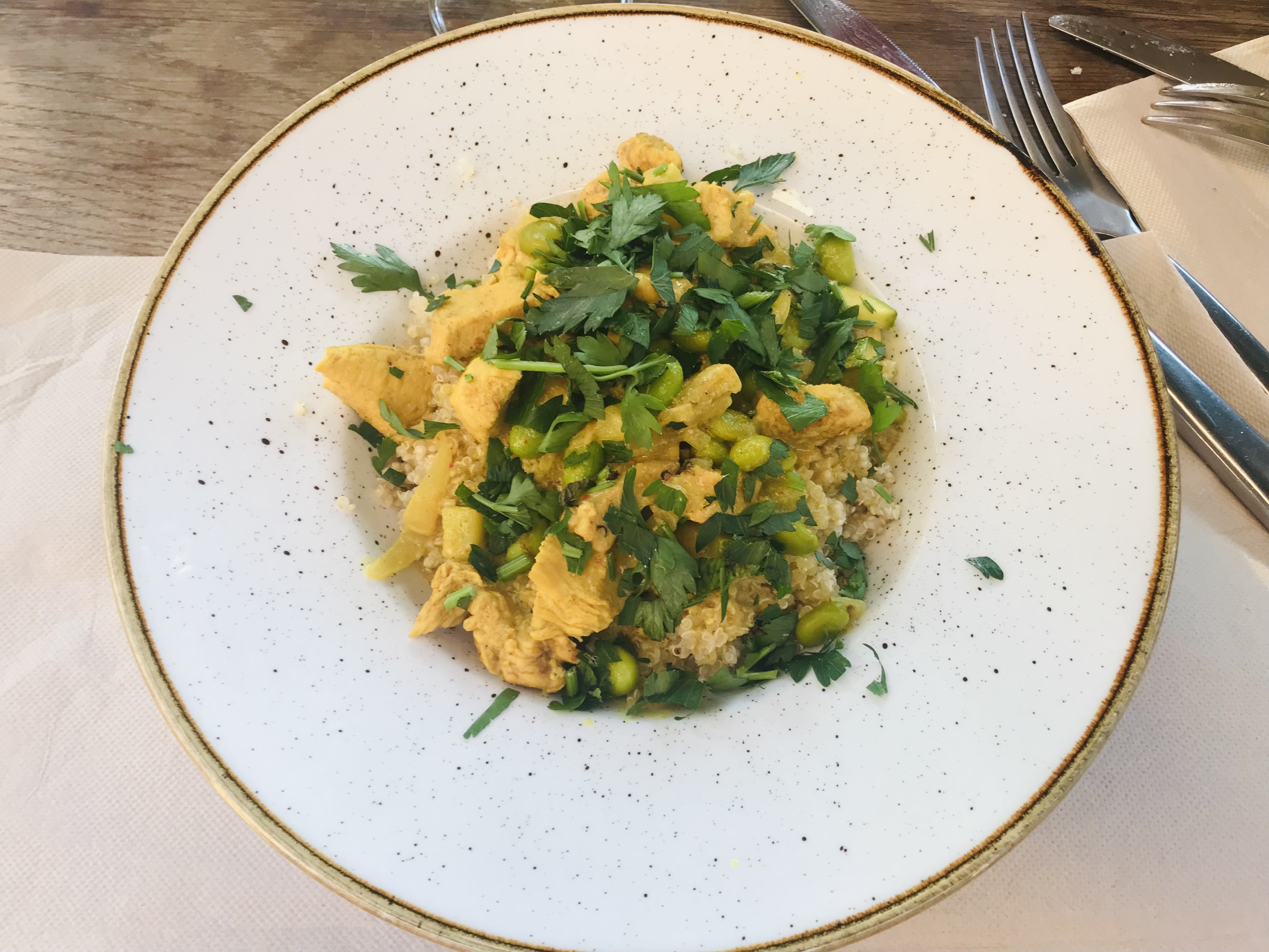 Carte très spéciale où les légumes (sans féculents) sont topinambours, navets, épinards. Mais bien préparés. Repas très léger, le midi-> ça va être difficile de tenir jusqu'au soir. Service très très amateurs, je m'en foutiste-> laisse un aperçu désagréable de l'expérience. Un resto laissant de marbre. Ne plus ni moins. C'est pas catastrophique mais sans intérêt majeur, insignifiant.
