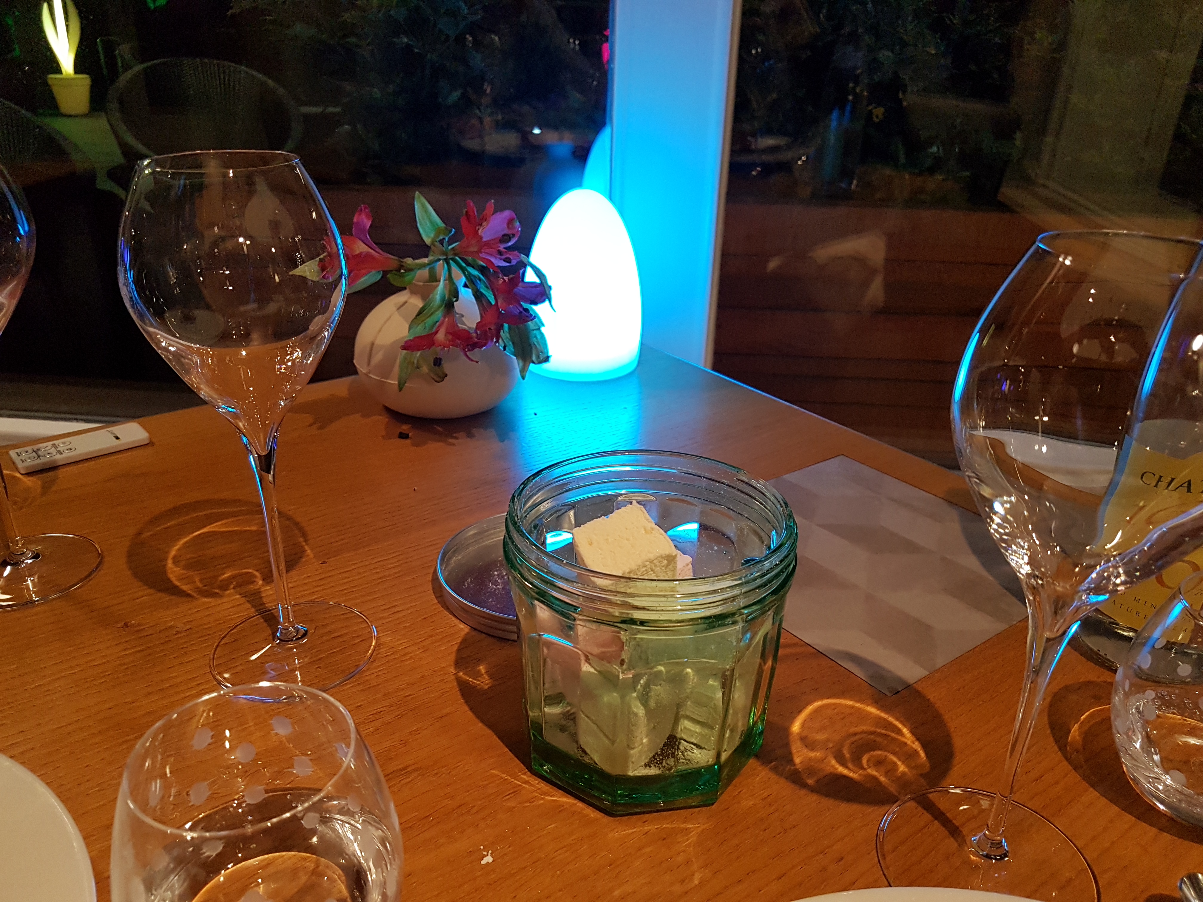 Une très belle surprise de mon mari qui m'a emmenée dans ce restaurant perdu au milieu de rien.. Accueillis dans un premier temps dans un salon très atypique avec du caractère, de gros fauteuils et des meubles sur lesquels tronaient de nombreuses bouteilles d'alcool, nous y avons déguster un aperitif conseillé par le serveur. Un whisky pour mon mari, un excellent cocktail pour moi. Vint ensuite le passage au restaurant, une toute petite pièce avec un baie vitrée sur toute la longueur donnant la vue sur un jardin à la décoration encore une fois très singulière : des animaux aux couleurs très vives donnant encore plus de charme à ce lieu. Le repas : nous avons pris le menu à 12 plats et le forfait 4 verres, une succession d'excellentes assiettes, accompagnées par des vins totalement improbables conseillés par le sommelier particulièrement sympathique puisqu'il nous a même pris en photo les étiquettes afin que l'on puisse retrouver les vins par la suite. Le service était rapide sans la sensation d'être surveillé en permanence. Nous avons terminé par un café et un thé (un énorme choix aux goûts très particuliers que l'on ne retrouve pas ailleurs..) dans le salon de l'apéritif. Jusqu'à la fin, un service atypique puisque le thé m'a été servi dans un contenant en pierre ou quelque chose qui y ressemble, avec un petit sablier à côté m'indiquant le temps à attendre avant de pouvoir déguster un thé merveilleux... Pour conclure, un restaurant de haute qualité, un service impeccable et un joli lieu d'évasion pour ceux qui aiment voir quelque chose de différent. J'ai hâte d'y retourner.