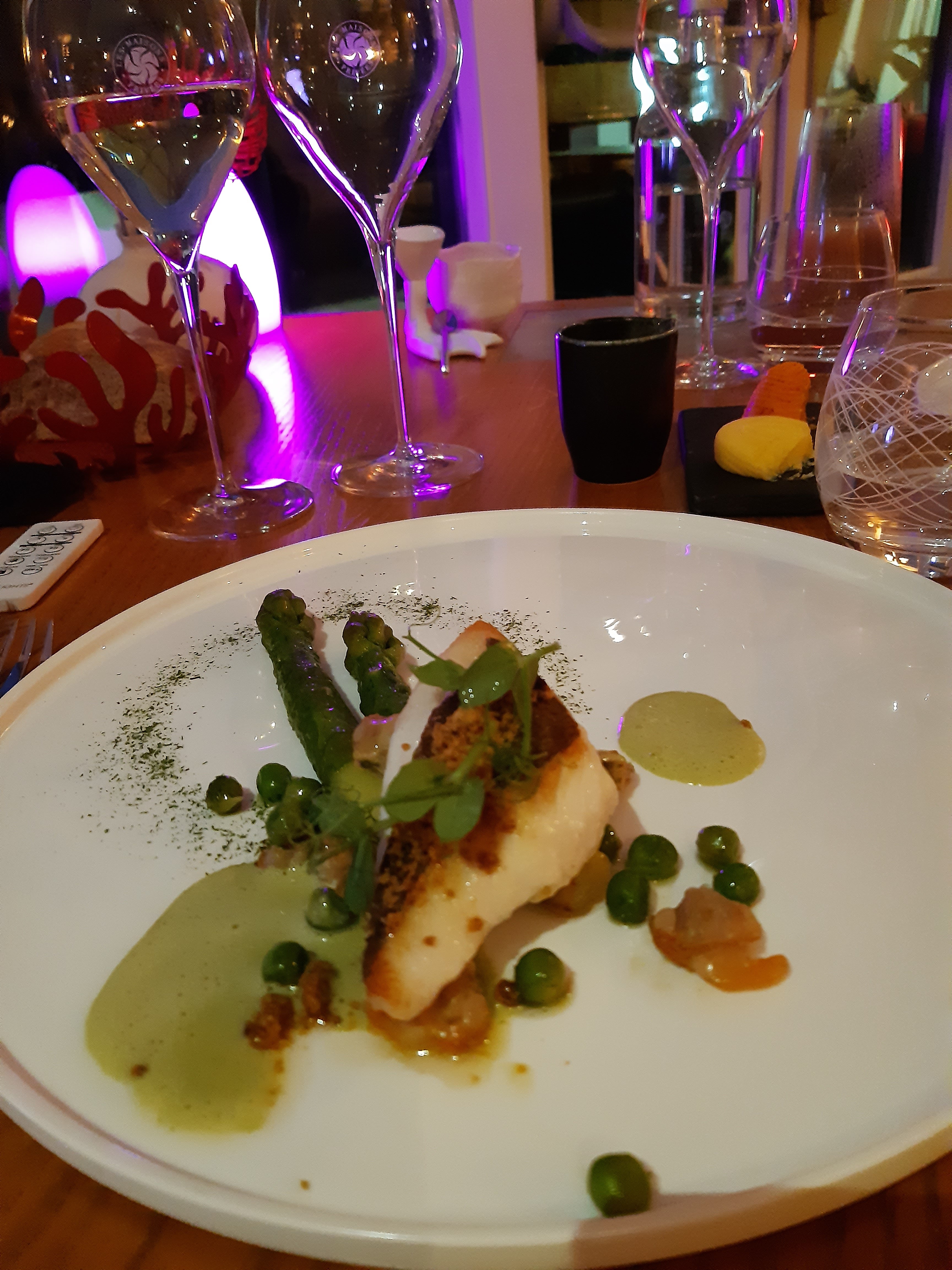 Très bonne cuisine ; on a adoré le croustillant de turbot, la guimauve et aussi les beaux fauteuils roses ! Mais s'il vous plaît Monsieur le cuisinier, arrêtez le wasabi !