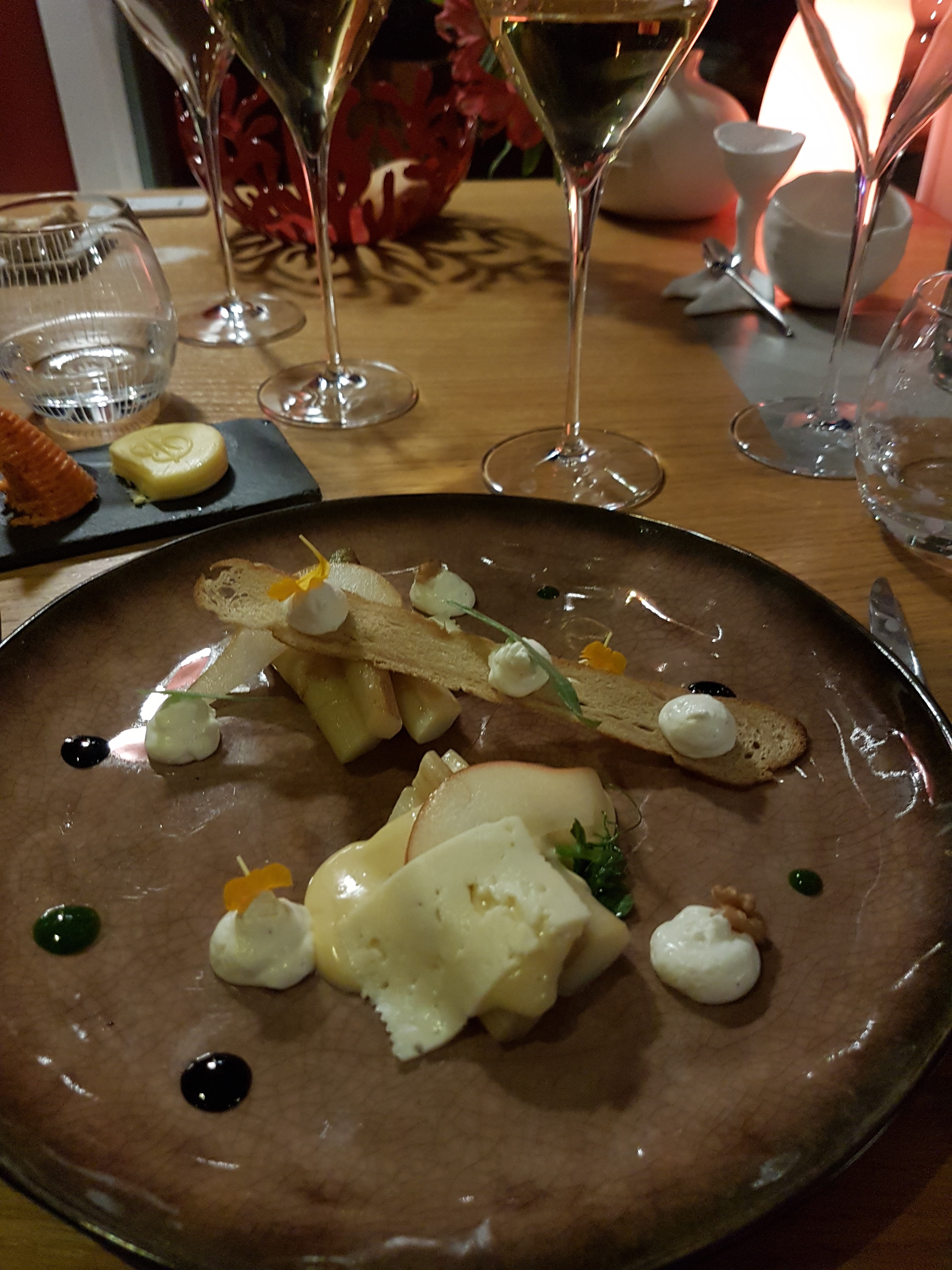 Excellent du début à la fin ! Le cadre est très beau et agréable, l'équipe est aux petits soins sans être sur notre dos ! Beaucoup de saveurs, beau service et belle présentations, un plateau de fromages gargantuesque et divin, un petit coin salon parfait pour prendre l'apéritif. Vraiment un très bon moment