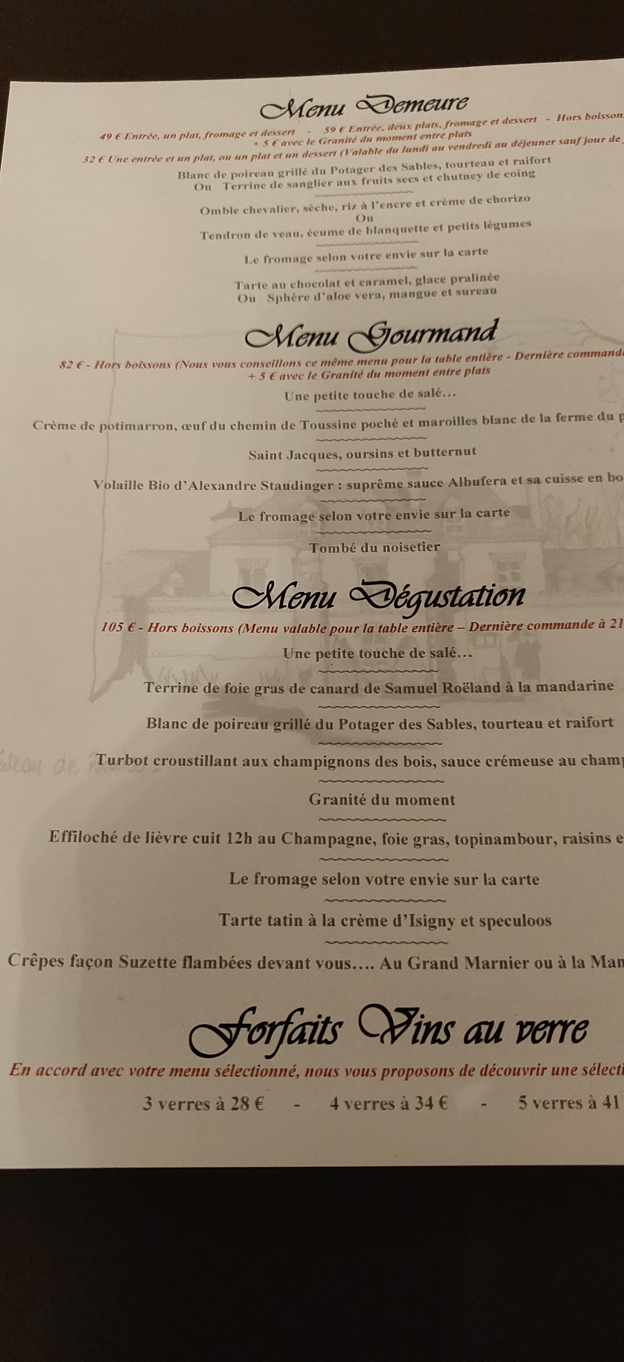 Magnifique. Nous avons goûtés les menus demeure, gourmand et dégustation. Des régales. Bravo bravo et encore bravo c’est bon, c’est beau avec un service 3 ⭐️