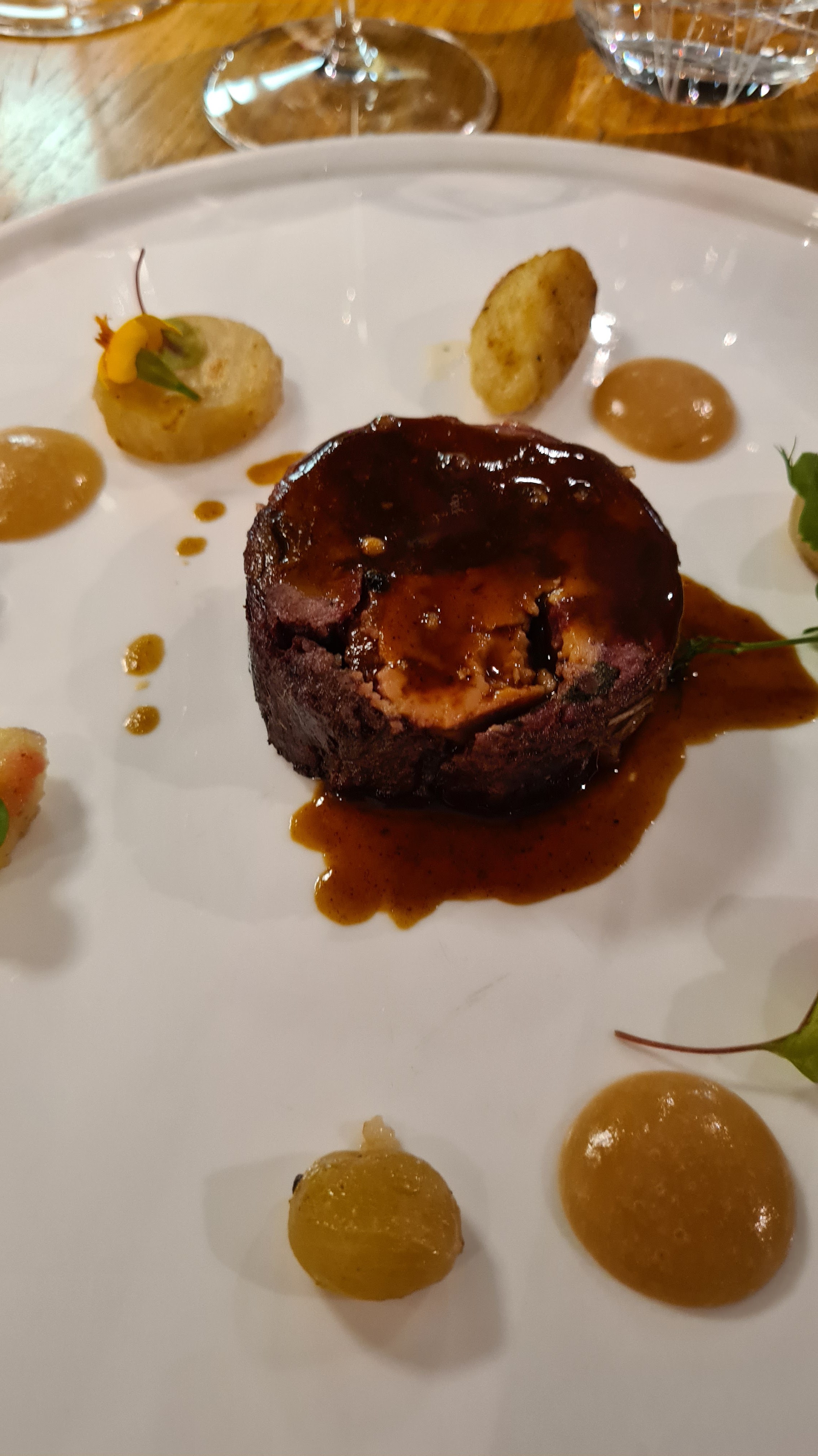 Restaurant gastronomique dans un cadre idyllique. Un chef qui fait attention aux petits détails et qui accorde ses plats avec une perfection rarement vue. Je vous conseille le menu dégustation avec les verres de vin que le sommelier vous accordera parfaitement avec les plats. À recommander sans hésitation, on y repassera certainement si on est à nouveau dans la région =D