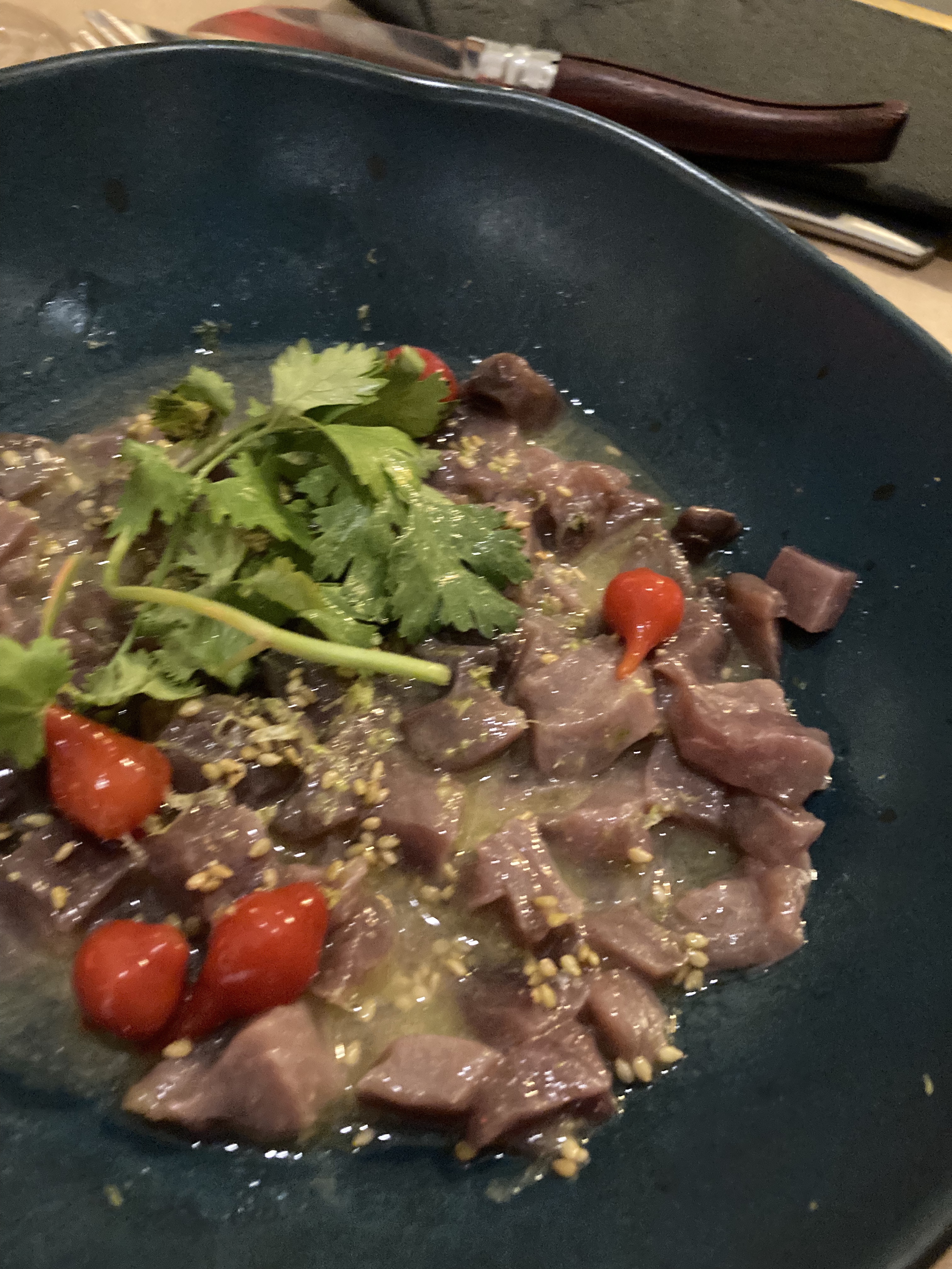 C est la carte originale qui nous a attirée. Eh bien pas déçus, c était très bon. Les entrées sont bien travaillées et le tartare de boeuf était très bon et copieux Service souriant, de bon conseil et agréable À recommander 👍🏻