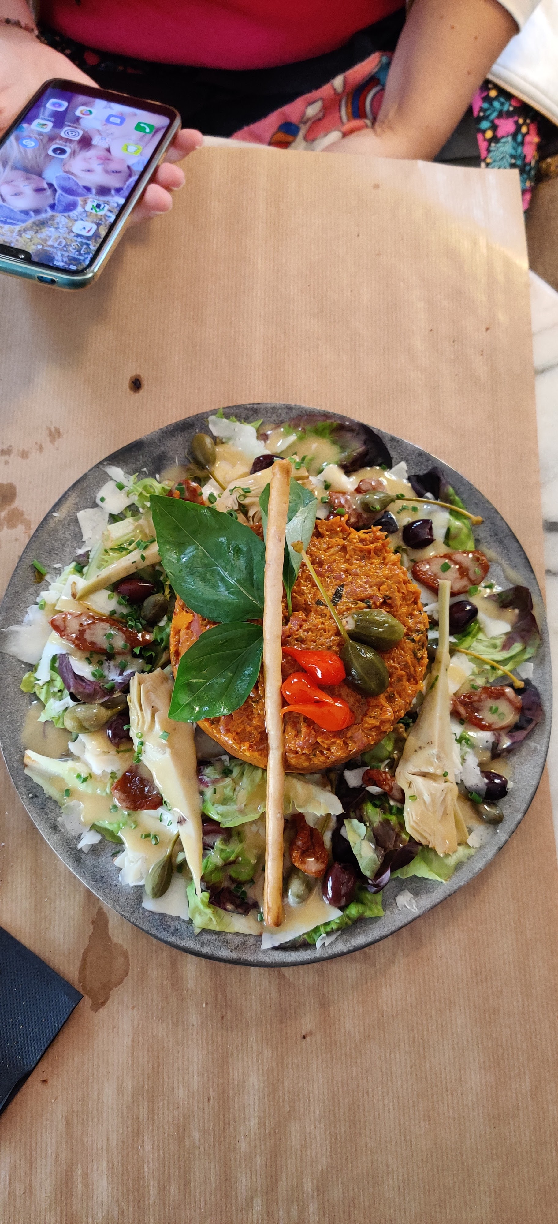 Assez déçu de la salade nicoise... les tomates n'avaient aucun goût, les concombres non plus. Les œufs durs étaient trop cuits. La vinaigrette était très acide, peu parfumée. Les oignons crus ne se marient ni avec l'artichaut ni avec les olives. Je n'ai pas compris le fenouil cru. Bref, l'alchimie n'a pas fonctionné avec moi. Je n'ai pas vu les pois gourmands... Les prix sont excessifs au regard du plaisir de ce que nous avons mangé.
