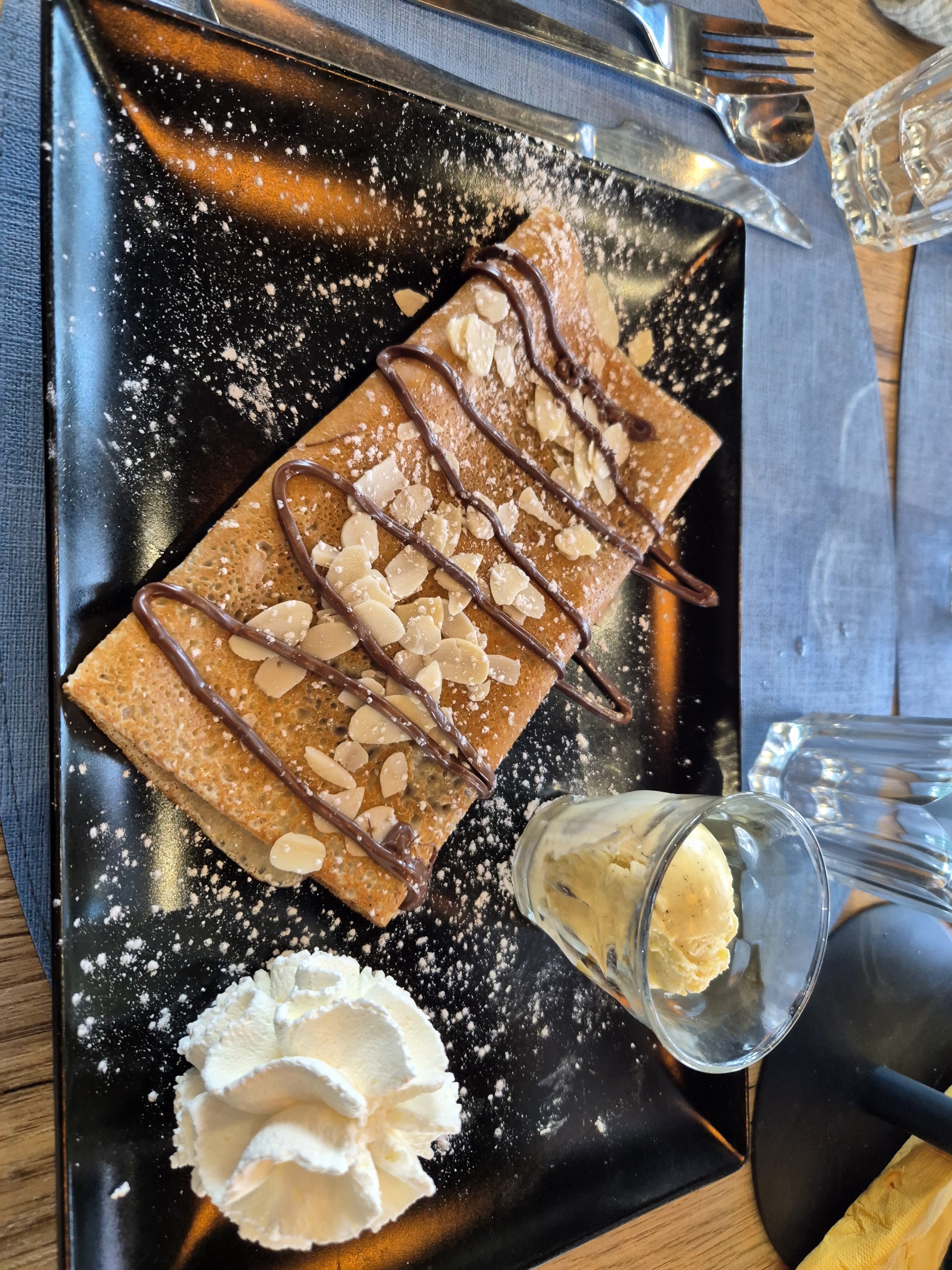 Déjeuner du midi avec mon compagnon, serveuses adorables et accueilli avec le sourire pour terminer notre séjour à Fécamp, c'était très bon et top la galette chaude au nutella à la fin 🤩