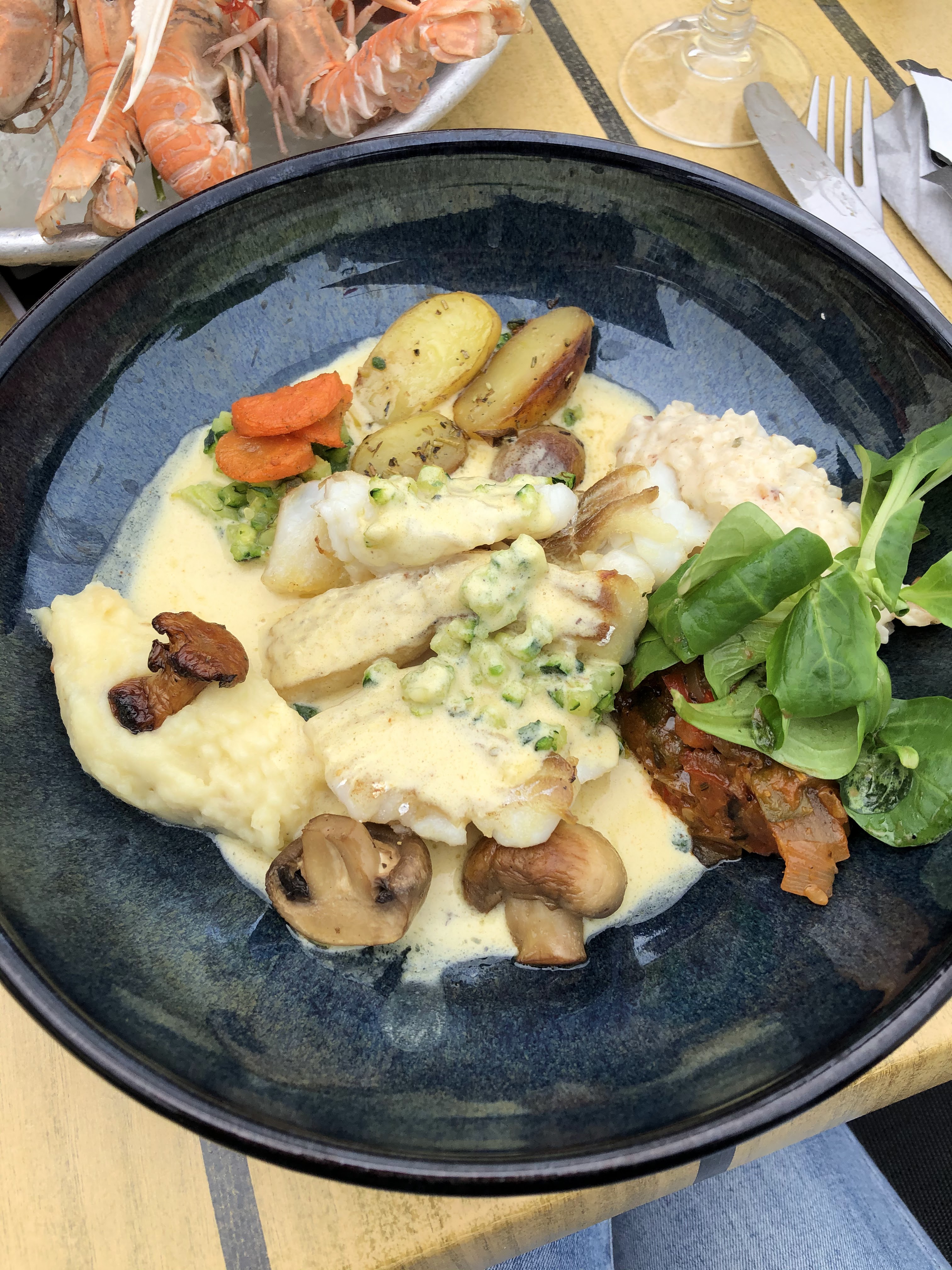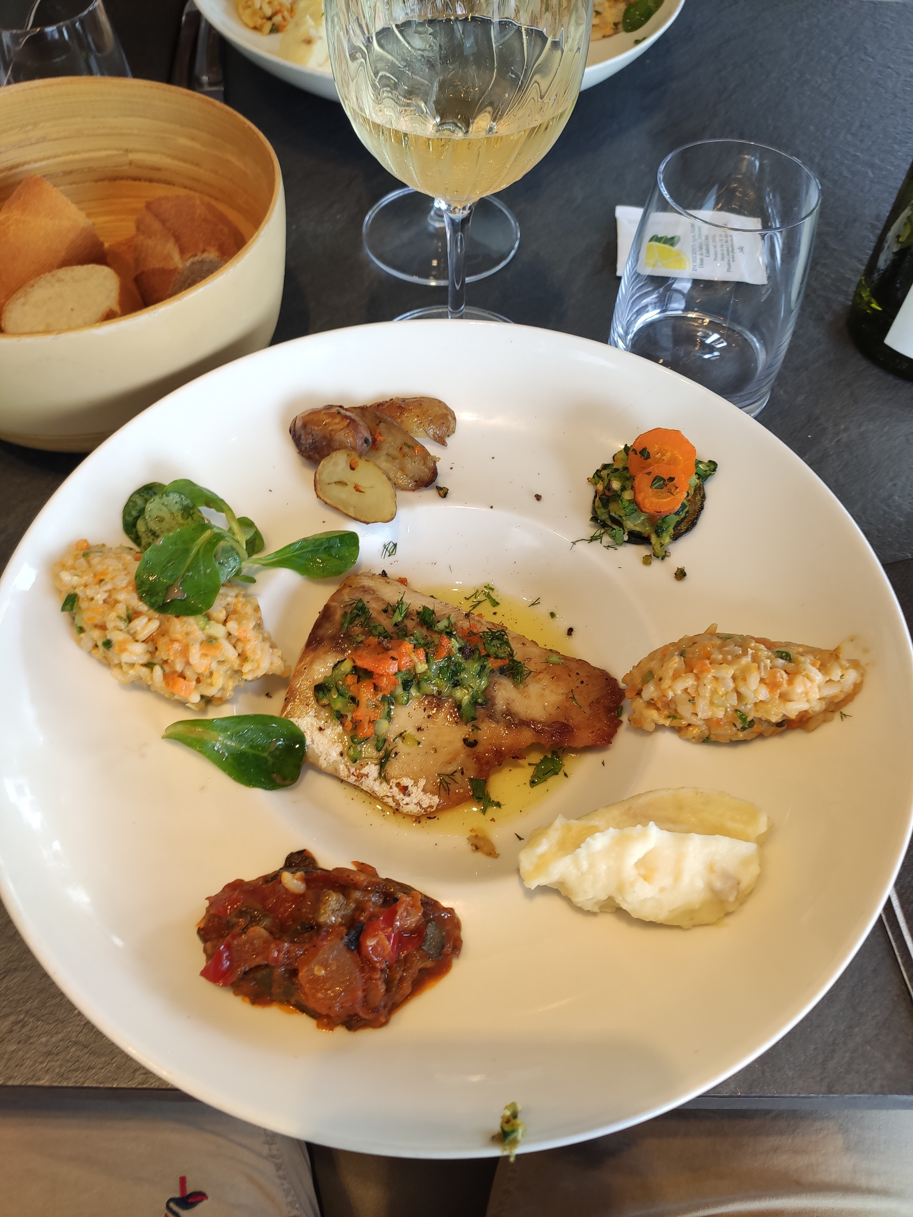 Cadre idyllique, personnel aux petits soins, carte de saison, cet endroit, en bord de mer ne vous laissera pas indifférent. Je conseille le plat « Retour du marché », duo de saumon et dos de cabillaud, purée aux épices,tapenade d’aubergines, concombre au safran. Le tout, frais du matin... À conseiller