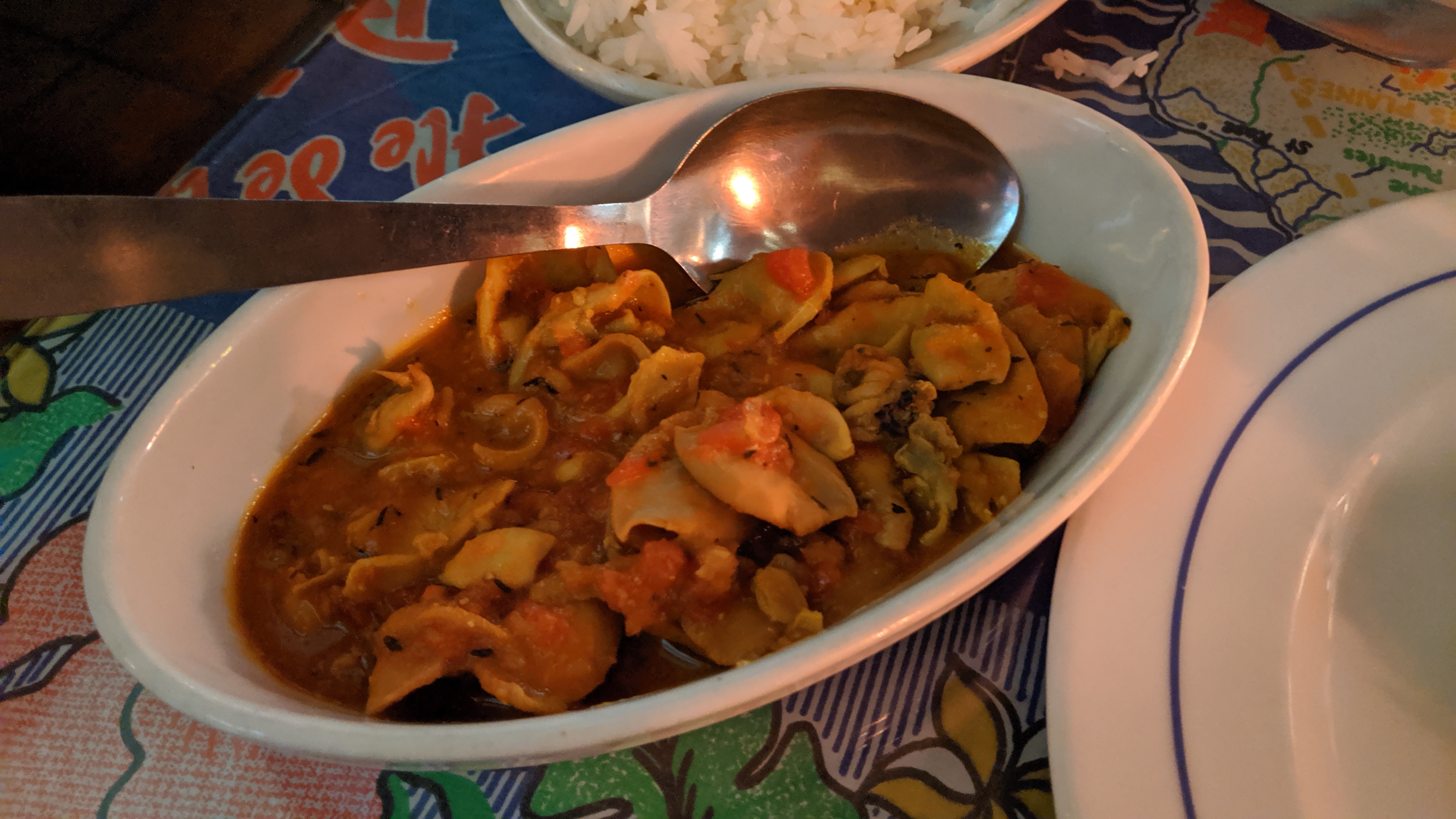 Tellement bon que j'en ai complètement oublié de faire une photo ! Le rougail saucisse est bien épicé en ce moment, calamars délicieux, tout comme les accras et les samosas. Le plus : une super terrasse pour l'été