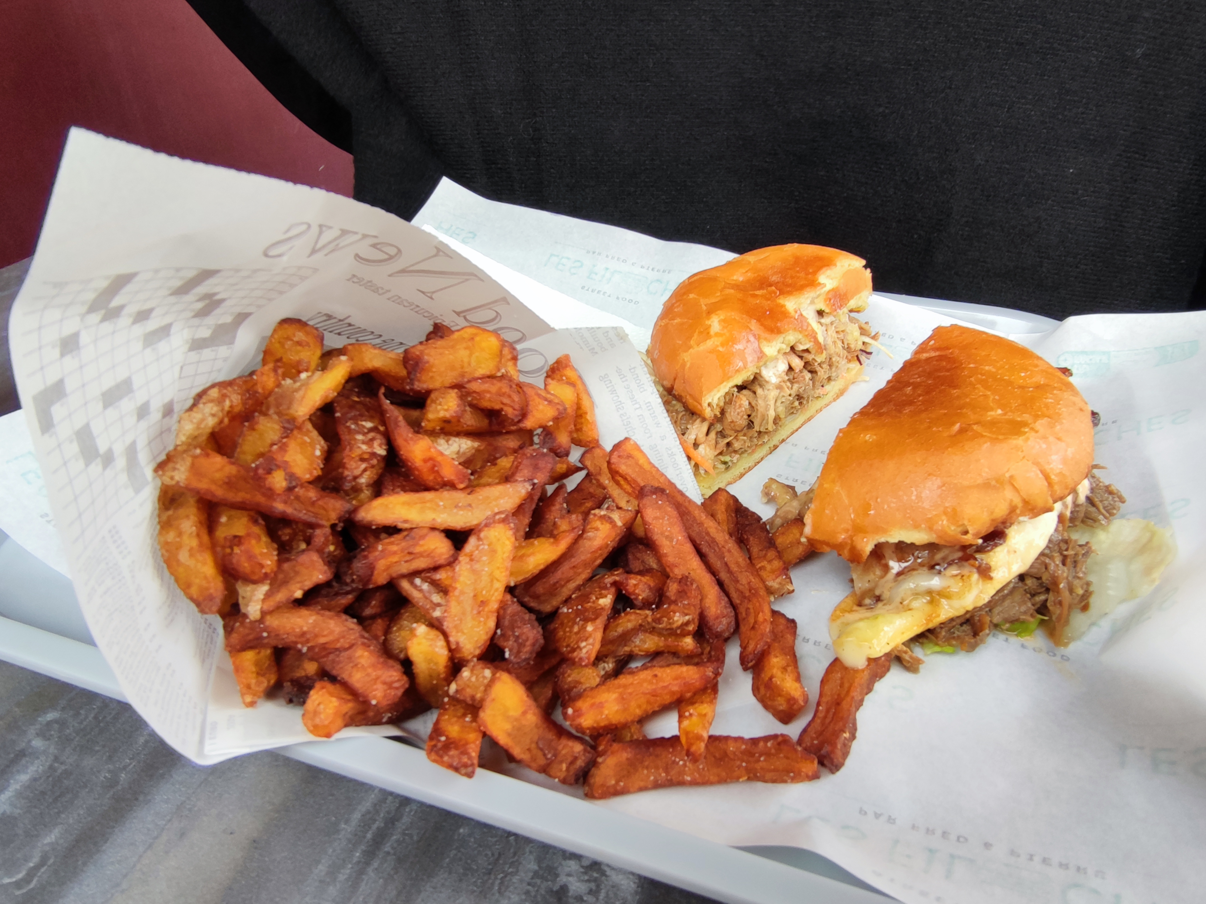 Équipe du feu de dieu. Burger excellent je conseille les parates douces. Le Burger effiloche de porc