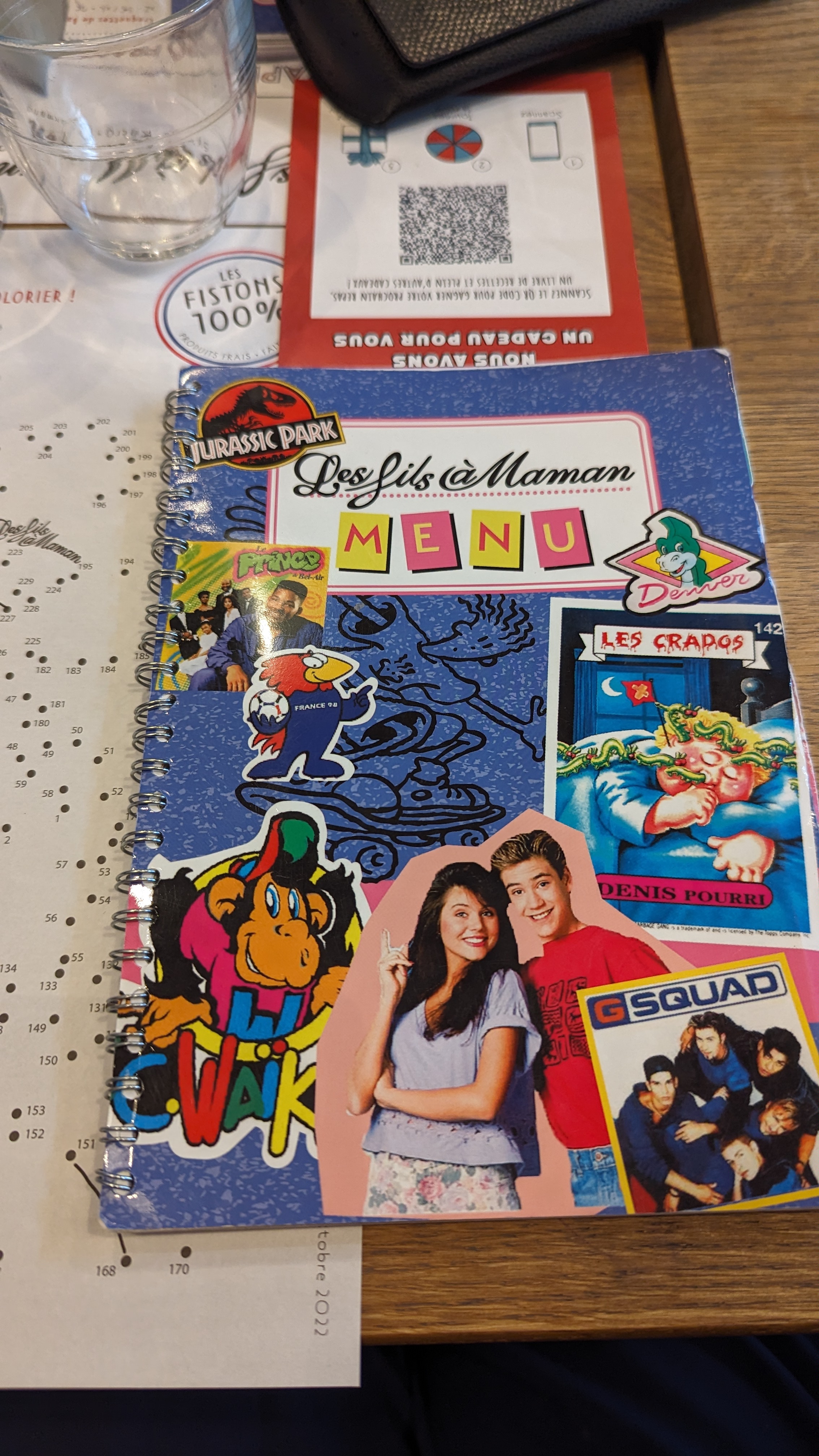 Je suis venu deux fois, un accueil bienveillant. Une décoration au top! Pour vivre les trois décennies 70,80,90. La télévision dans les wc avec des clips ou génériques de dessins animés j'adore. Avec les musiques de l'époque, et le cahier de textes comme format menu. Rien n'a redire parfait pour un repas régressive ! Je conseille cet établissement, Peut-être à une troisième fois chez vous...