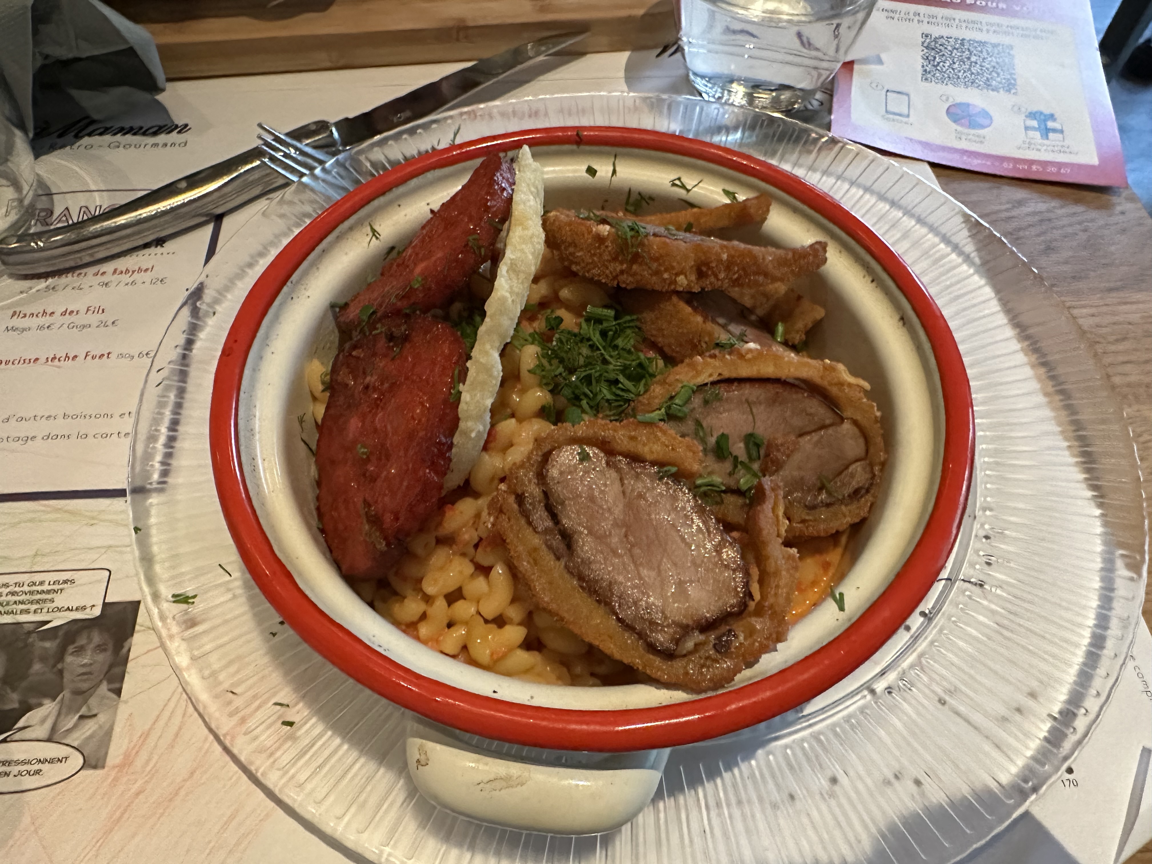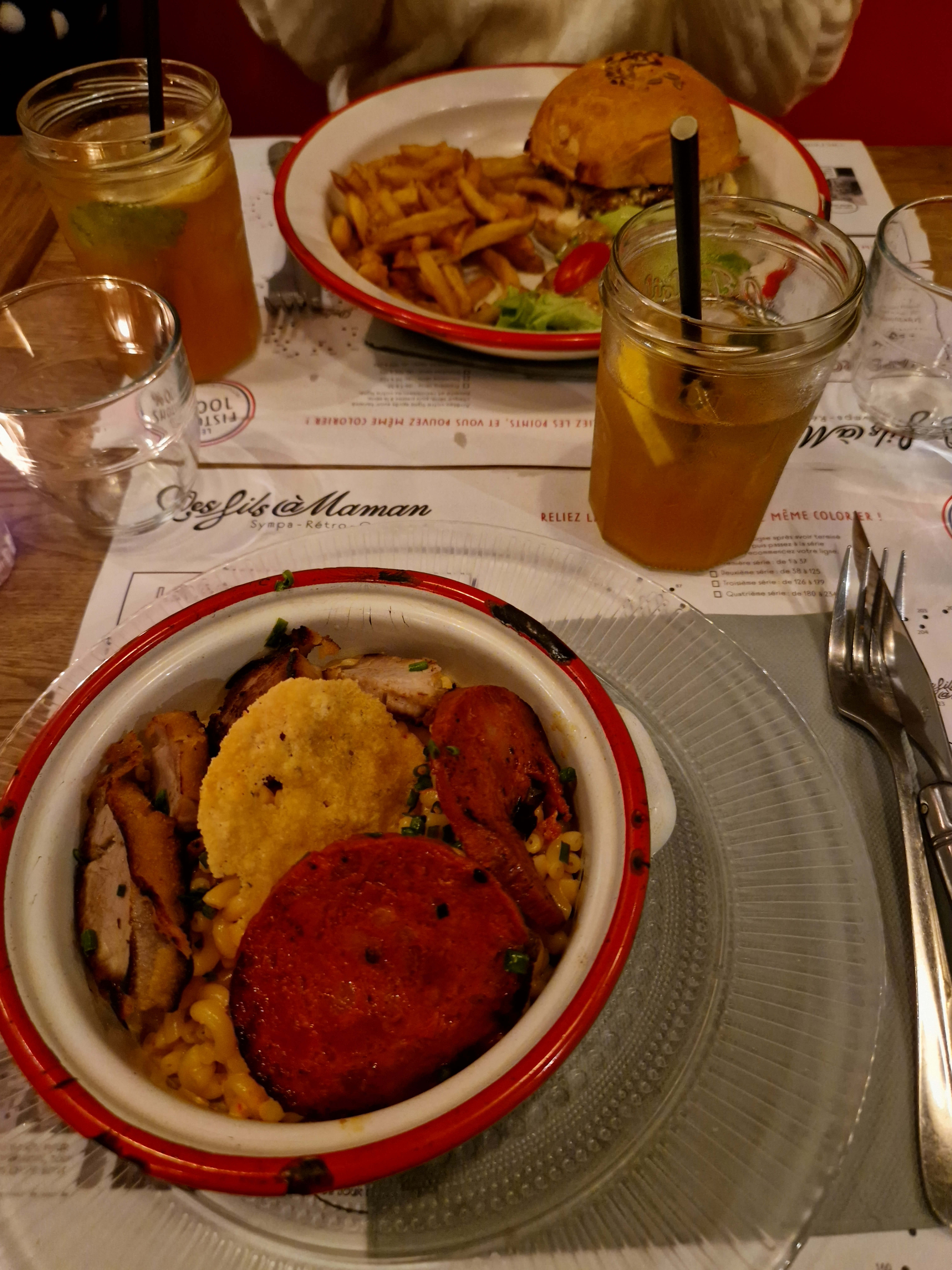 Plats soient disant réconfortants cependant ils sont mal préparés et peu goûteux. Il faut avoir une petite faim car les portions ne sont pas généreuses et le rapport qualité prix est médiocre. Je ne recommande pas et je ne comprends d'ailleurs pas les notations de ce restaurant. Nous avions testés les fils à maman à Rouen, qui est bien meilleur à celui-ci. Nous ne reviendrons pas même si le service et l'accueil sont les seuls points positifs.