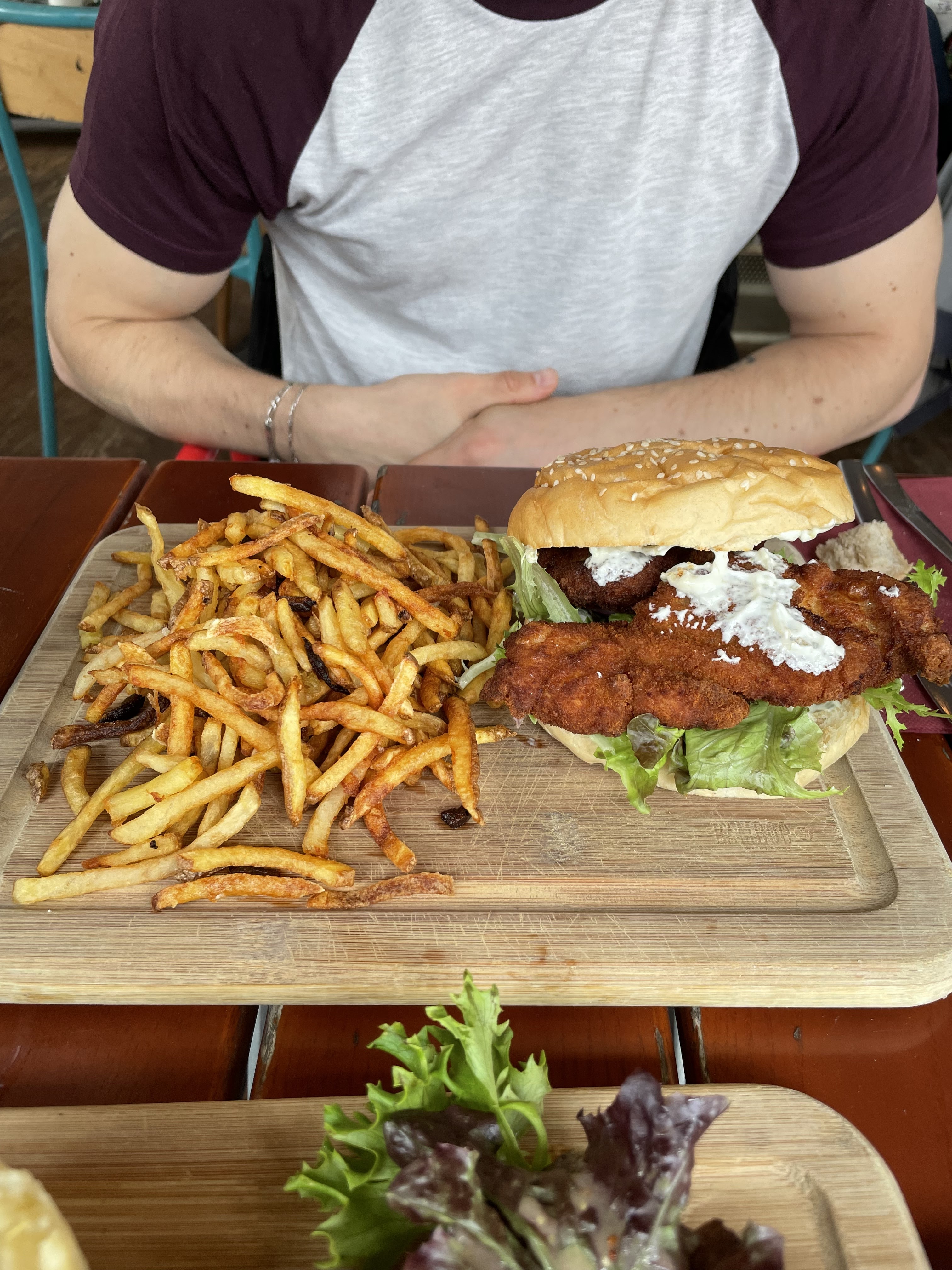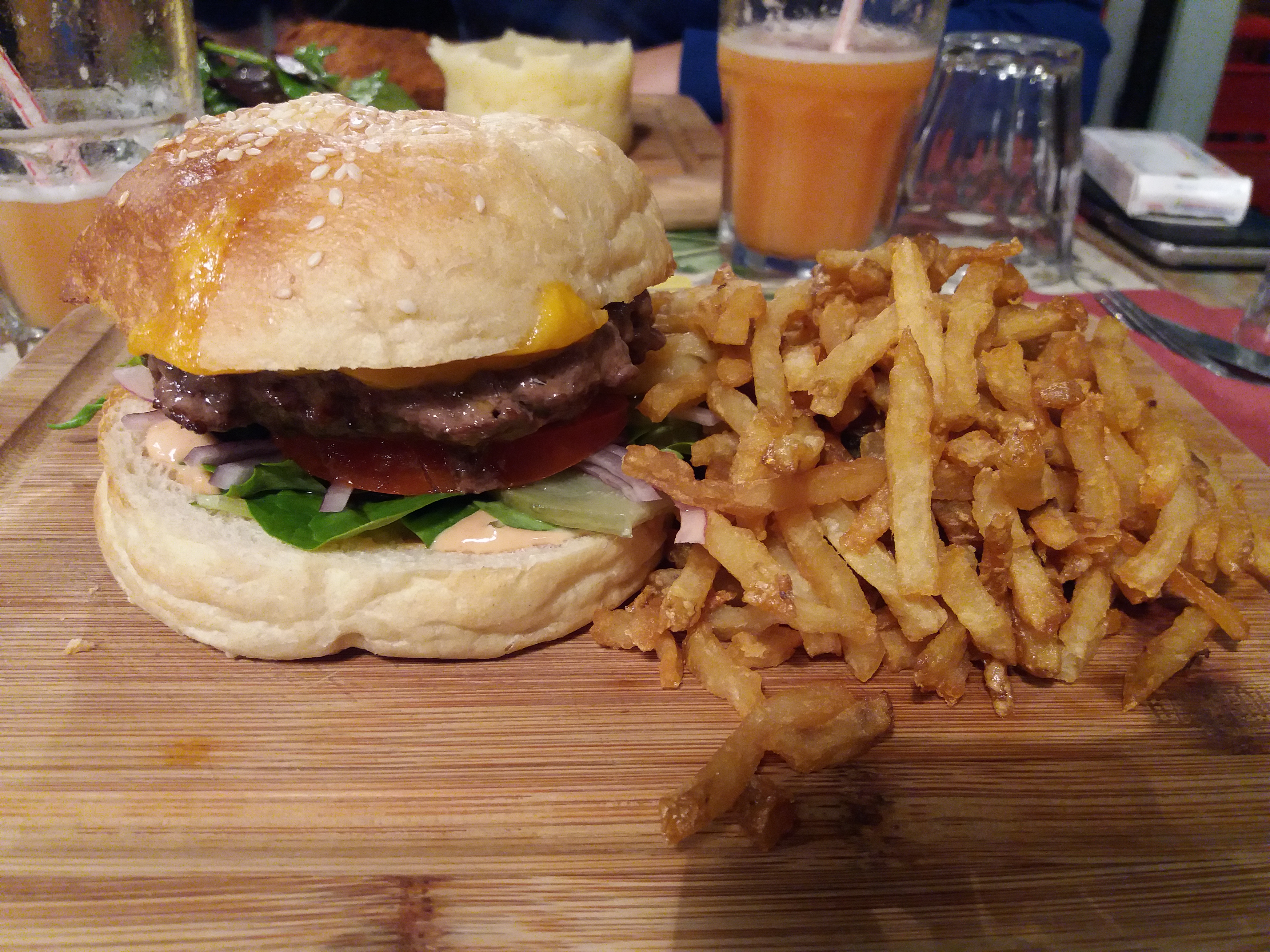 Accueil très chaleureux, spot super agréable très bonne note pour les fils à maman de La Baule! Cheeseburgers délicieux, cuisson respectée du steack, frites fines et croustillantes comme j’aime. C’est simple, convivial et délicieux. Que demander de plus !
