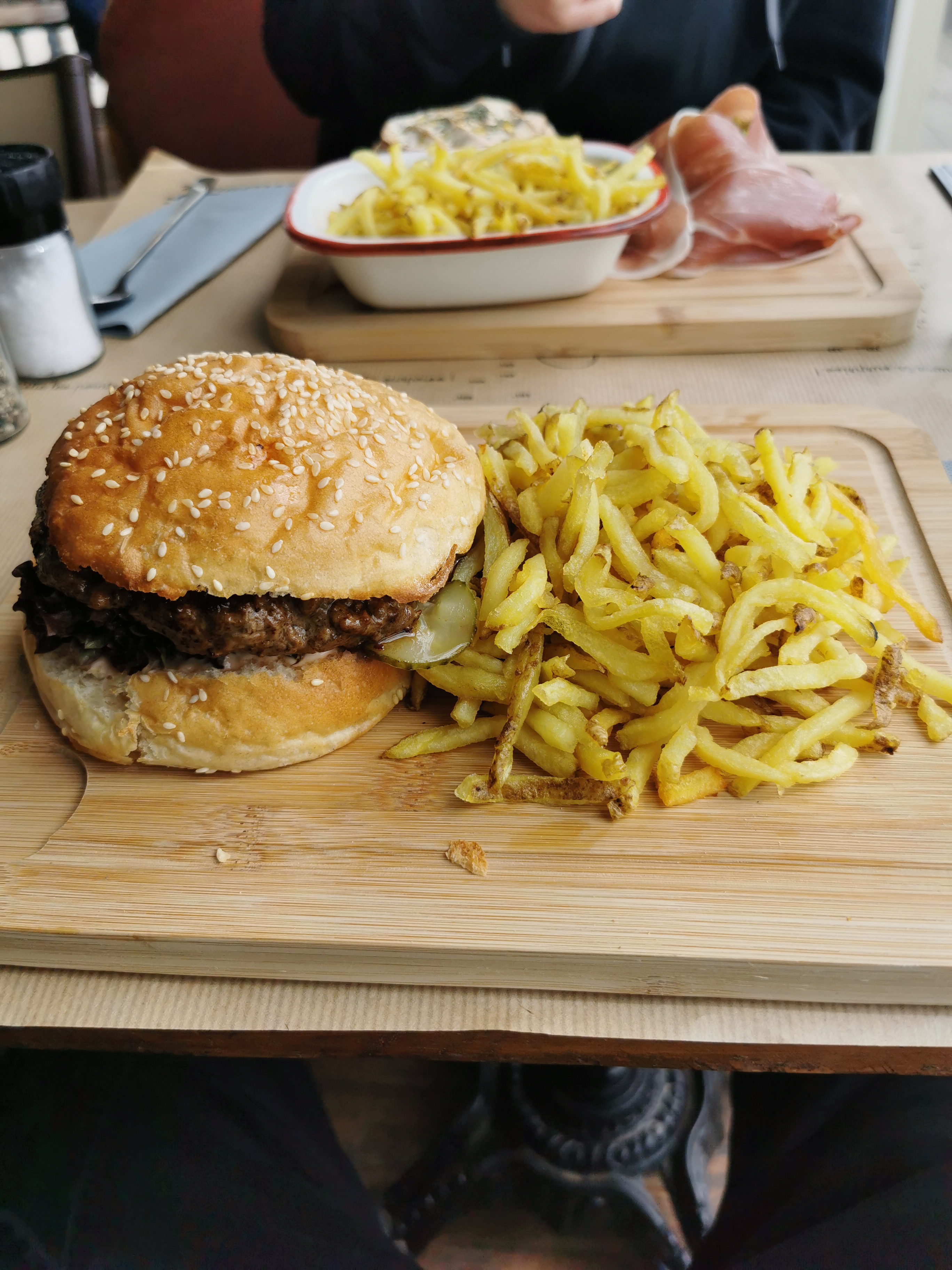 Super lieu, très bien accueilli avec notre chien, gamelle d’eau offerte 😄. Concernant le bar, très bon americano ! Nous sommes assez exigent… 🙄 😂 La nourriture… que dire…. Un régal !!! 😋😋😋😋 nous avons pris deux burger différents, il ne reste plus rien ! Pain très bons, viande hachée très bonne aussi, frites maison, que demander de plus … ah oui, si, très bien servi pour les bons mangeurs ! Et les desserts 😋😋 Pour ne rien gâcher, très bon accueil, personnel sympa et très souriant, nous recommandons à dix mille pour-cent !!!!