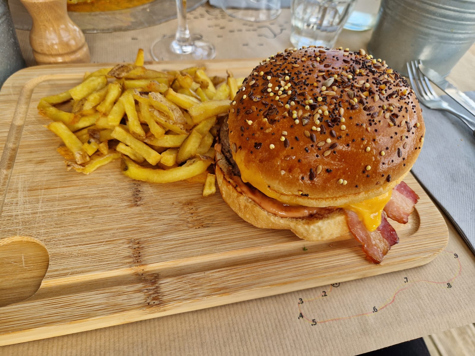 Bon restaurant de plage à l'ambiance décontractée. Serveur sympathique et discret.Excellent burger accompagné de frites maison...un délice! Et le dessert au nutella n'en parlons pas..Bon rapport qualité /prix.Je recommande ce restaurant!