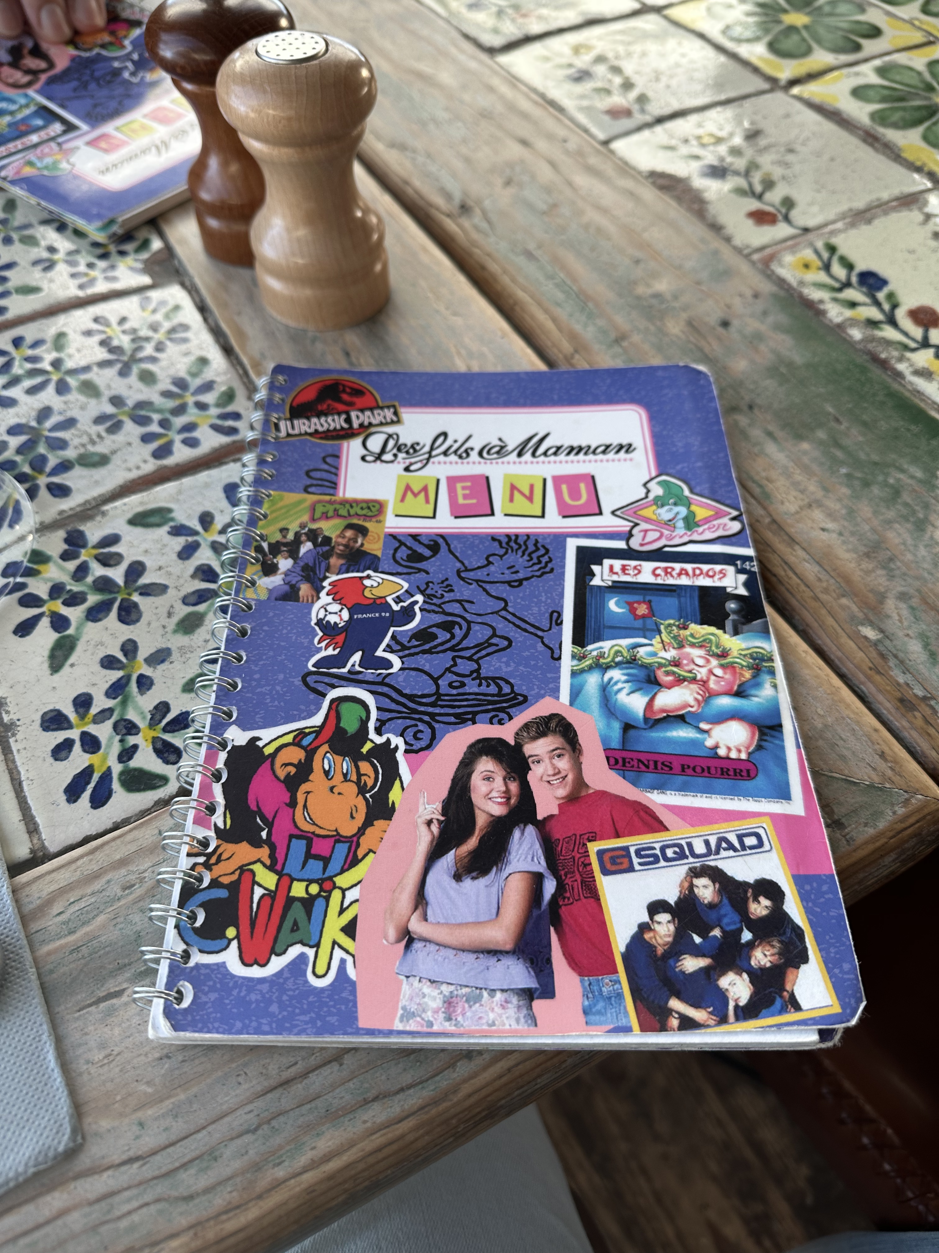 Concept génial, replongez vous dans les années 80' 90' avec une déco surprenante jusqu'au menu! Le repas est très bon ! Rendez-vous également dans les toilettes ;) vous pouvez également acheter quelques souvenirs comme un livre du cuisine par exemple