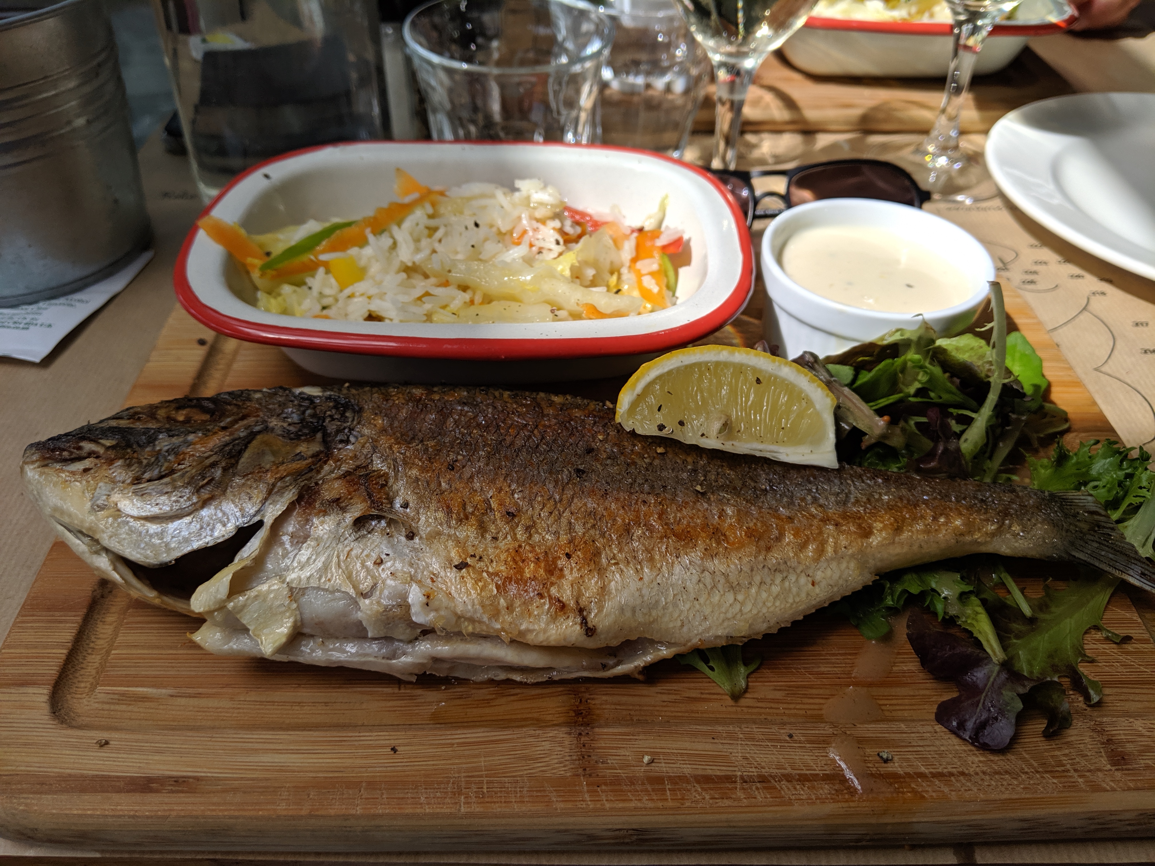 Bonne nourriture pour un restaurant en bord de plage, un menu basique et petit mais un choix suffisant. Les menus sont disponibles en anglais. Nous avons eu 3 plats, une bouteille de vin et un apéritif pour 100 €, un très bon rapport qualité/prix. Le personnel était sympathique et la nourriture était délicieuse