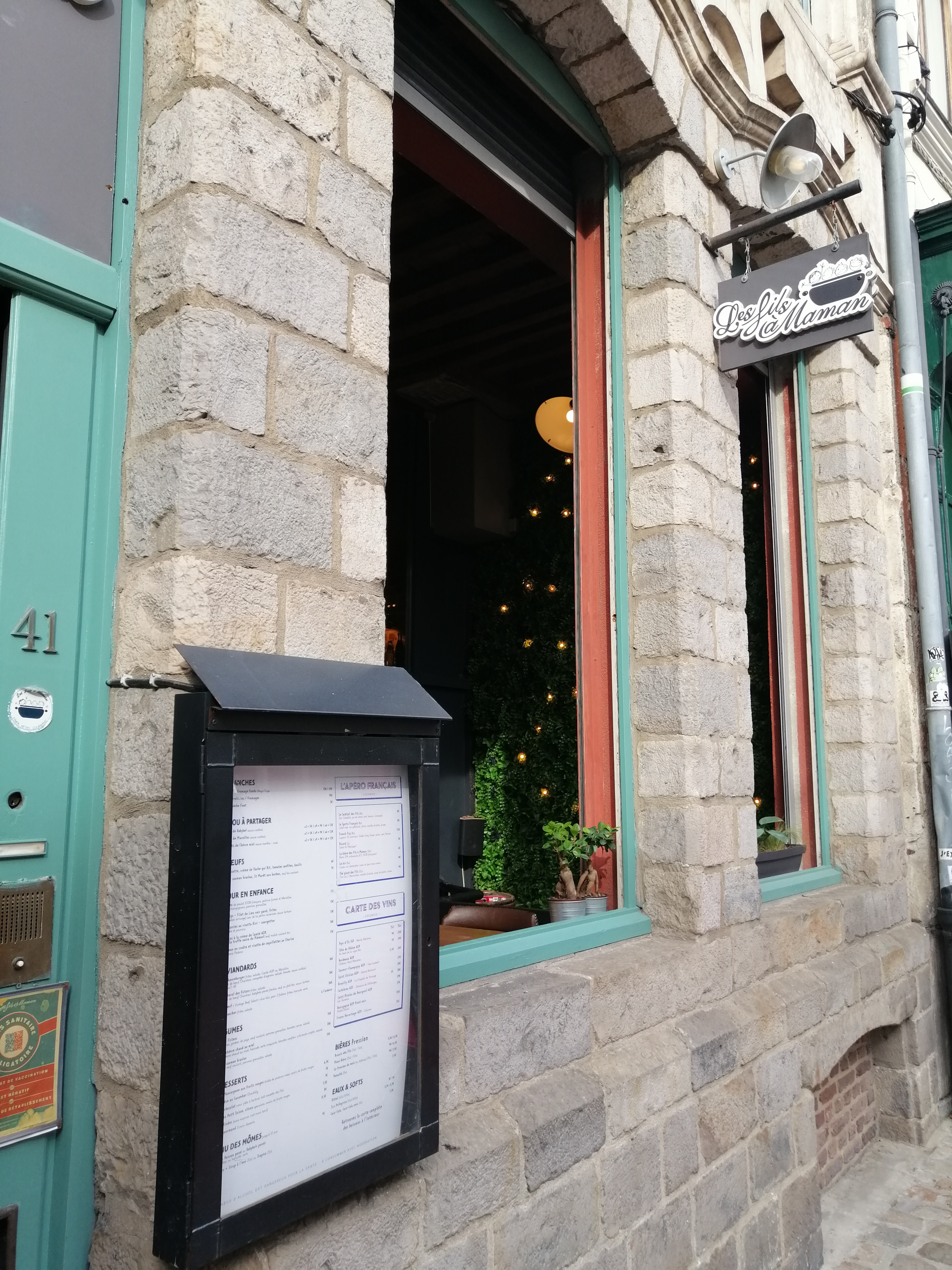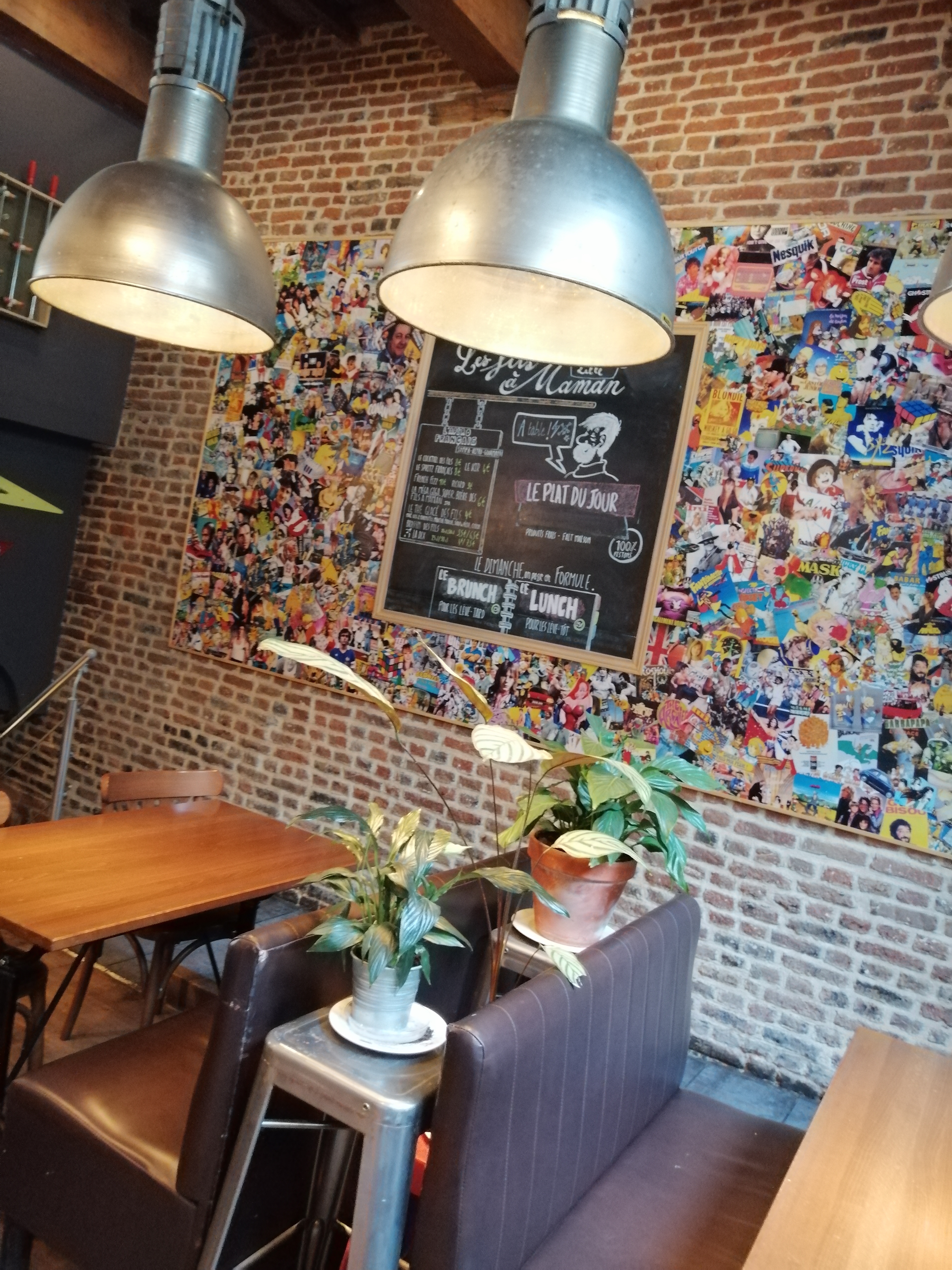 Les Fils à Maman est un petit restaurant rue de Gand. Son style fait aussi son charme puisqu'il prend le parti de jouer la carte de l'enfance. Les murs sont couverts de jeux et autres affiches/collages sorties tout droit des années 70-80-90 avec de multiples références à des licences populaires de notre enfance. L'ensemble donne un cachet vintage et écolier qui de retrouve jusque dans le menu, littéralement présenté comme un petit carnet de textes. Côté restauration, c'est la même chose avec des plats pour enfants revisités tels que le Cordon Bleu-Purée, le Cheeseburger sans parler du babybel fondu en entrée ou du Tiramisu au Kinder Surprise en dessert. C'est à la fois familier et surprenant, bref, un vrai plaisir servi en portion généreuse. Pour agrémenter le tout, le personnel est souriant, drôle et décalé, on y vient donc avec plaisir et l'on plaisante facilement avec les gens qui nous entoure. Cela restitue vraiment l'ambiance conviviale et familiale voulue par ce petit restaurant qui devrait ravir les plus jeunes et ceux qui ont su le rester. N'hésitez donc pas à y poser votre cartable pour un dîner, un brunch ou un lunch.
