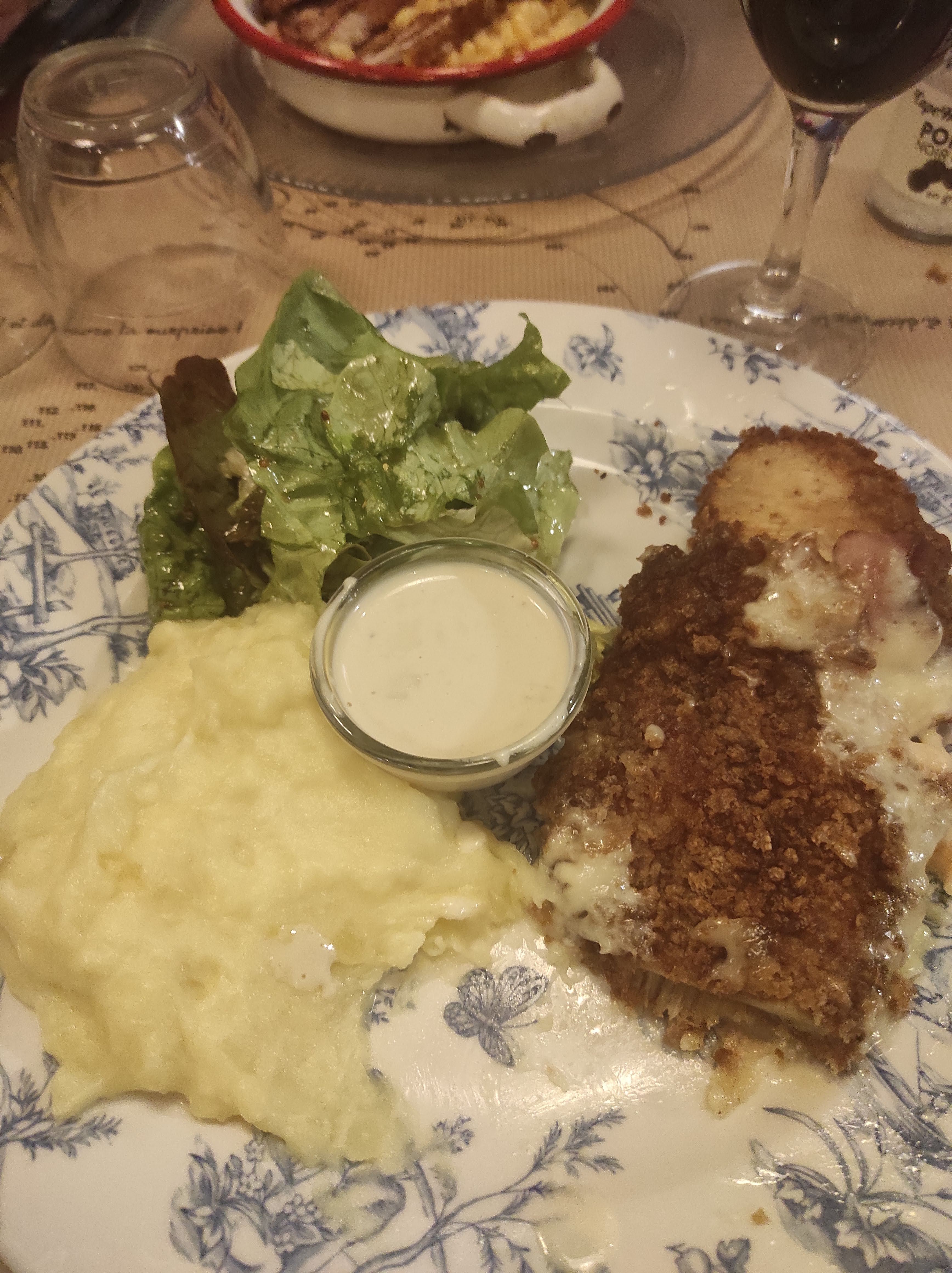 Cordon bleu a fuir !! Poulet aux hormones, cuit au micro ondes ! Caoutchouc ! Le lard cru !.. puree froide !! Le plat est reparti 2 fois.. surcoté ! Attrape touriste, alors qu on en est pas !.. Et même pas un geste commercial ! La classe.. Le jour et la nuit avec celui de Rennes!