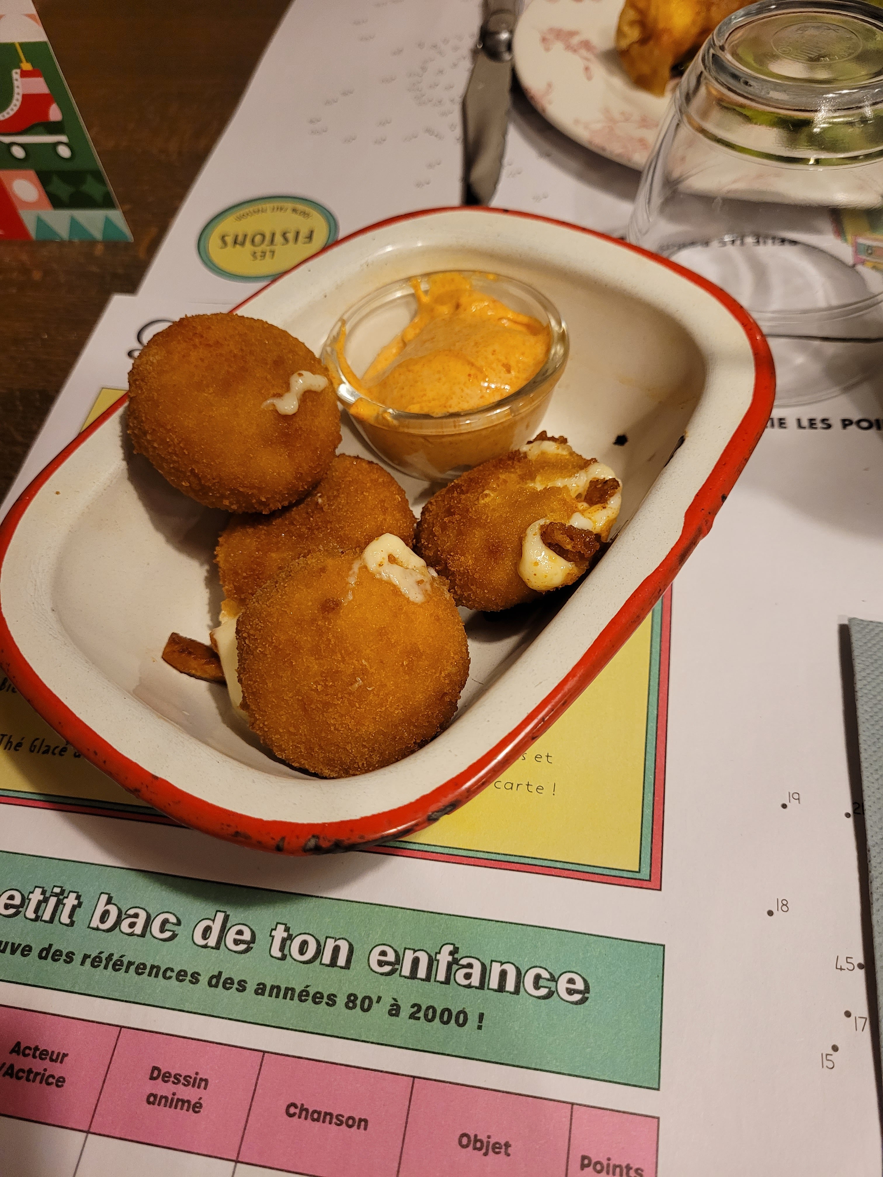 Pas mal. L’ambiance était sympa, déco vintage, avec pas mal de souvenirs d’enfance. Service agréable. Les frites sont faites maison, elles étaient bonnes. Le cocktail sans alcool était également très bon. Cependant, j'ai été assez déçue du cordon bleu, trop sec à mon goût, et le fromage était tiède. Je m’en faisais une joie, mais pour avoir déjà testé d’autres plats de leur carte, je ne recommande pas le cordon bleu. Déception également sur le dessert : il y avait un écart entre la photo de présentation et le dessert apporté pour la tarte snickers que ce soit en visuel ou en goût, une déception. (selon moi un rapport qualité/prix trop élevé surtout pour le dessert) Les tickets restaurants papiers ne sont plus acceptés. Je peux comprendre cela vu la complexité du nouveau système, mais c'est bon de le savoir avant, donc je l’indique ici.