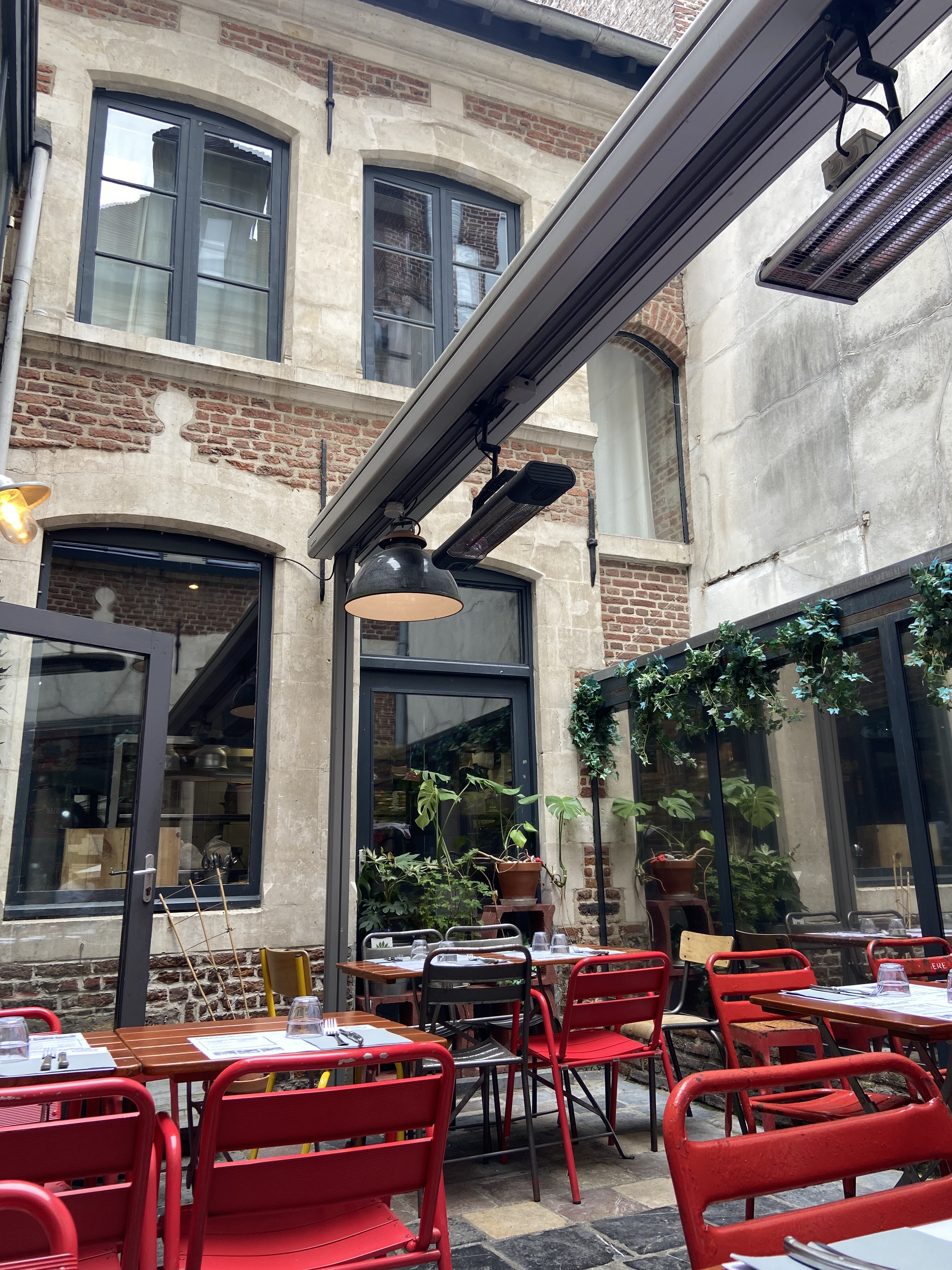 Hello, nous y avons mangé ce midi pour la premiere fois, nous en avions entendu parler via Instagram. Dans un premier temps : Quel accueil ! Le responsable était dynamique souriant et au petit soin. Le cadre est top, le lieu est tres original, et le repas dans le patio était l'endroit parfait :) Addition 55 € pour deux : 1 plateau de fromages panés en entrée, 2 thé frais maison, 1 steack à cheval frites salades, 1 bavette frites salades, 1 thé chaud et un moelleux au chocolat. Tout était parfait et au rendez vous, nous avons tout dévoré, nous en avons eu pour notre argent. Nous reviendrons :)