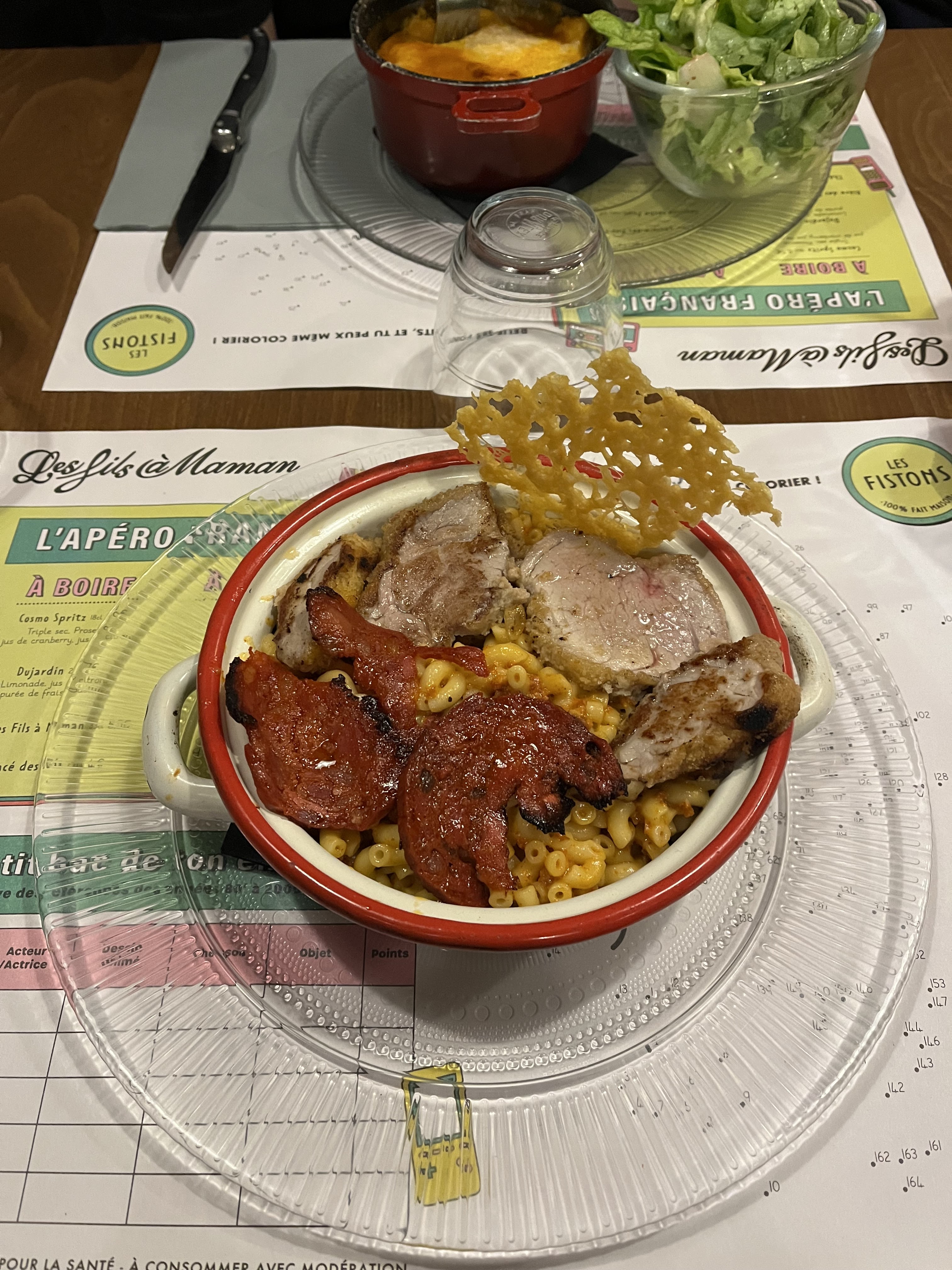 Nous retrouvons tout de suite notre âme d’enfant dans ce restaurant. À la carte des coquillettes au jambon, des babybels frites, les mégas cheeseburgers, des cordons bleus et j’en passe ! En plus des plats, les cocktails sont délicieux. En dessert, nous avons craqué pour le tiramisu au Kinder et nous avons adoré ! Les plats restent un petit peu chers