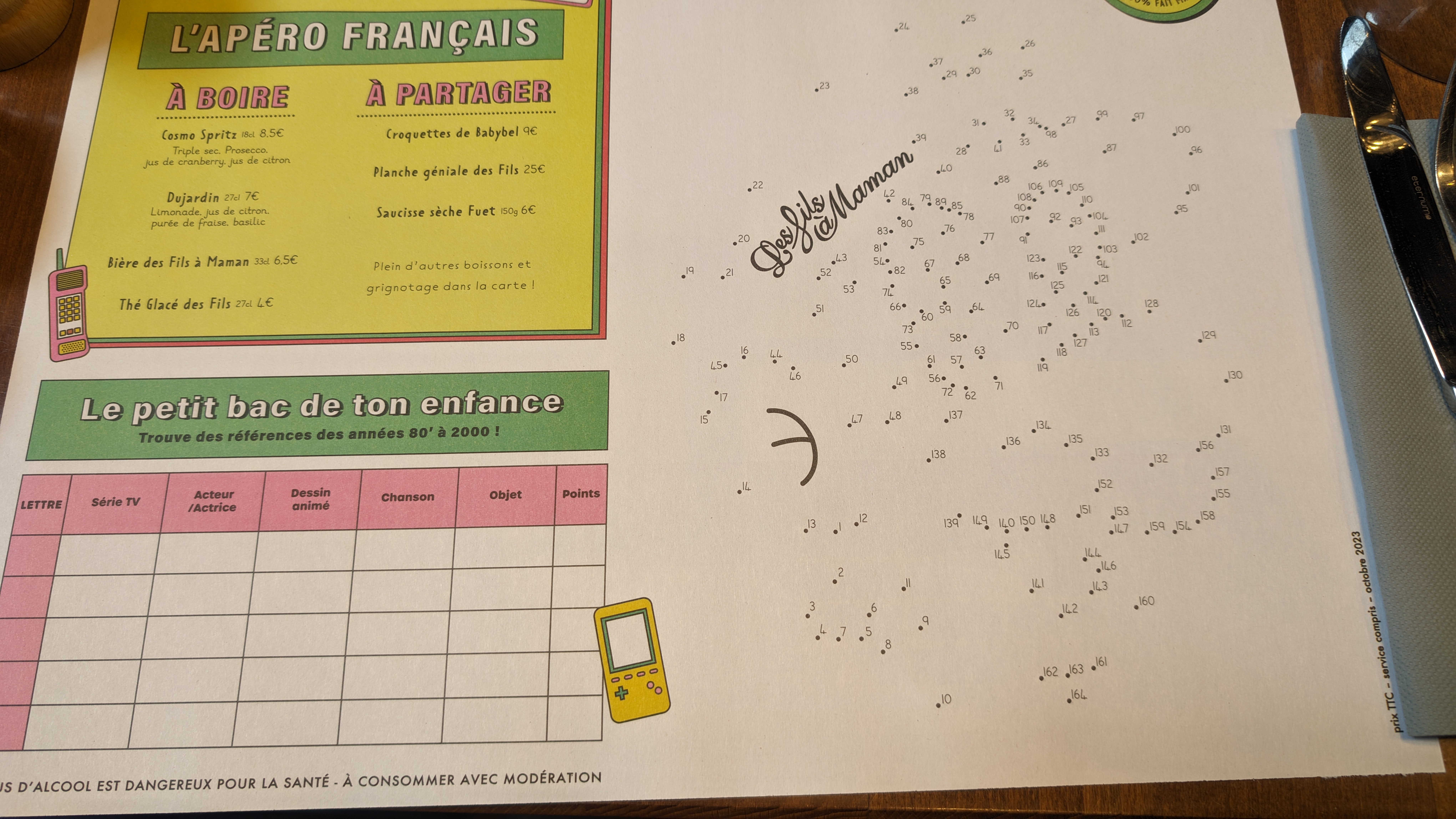 Super déco Menu (papier) très original qui rappelle des souvenirs Menu (nourriture) simple et efficace. Très très bon ! A refaire Merci les fistons...