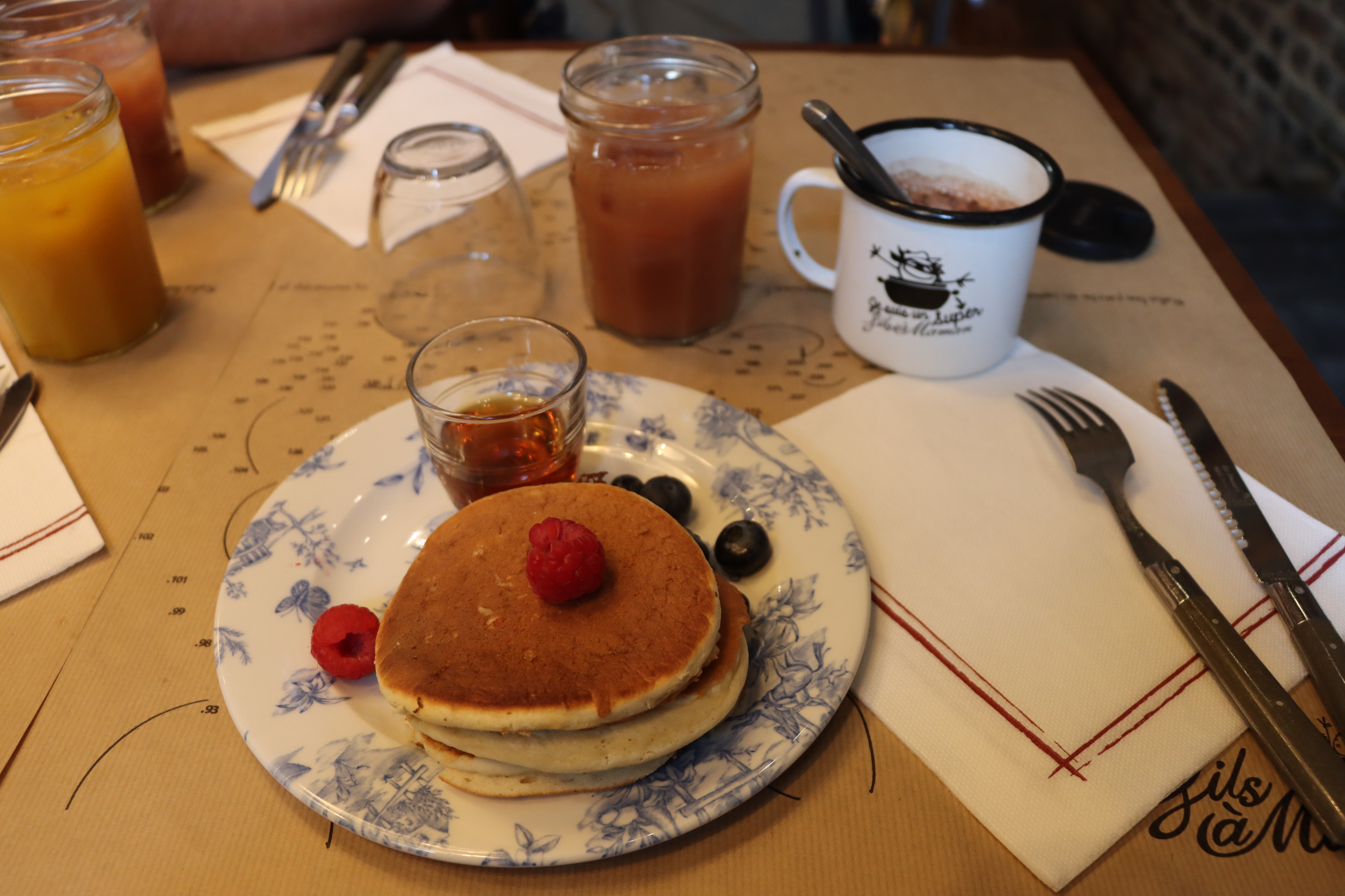 Je suis venue pour le brunch avec des amis et ce fut un repas très agréable et délicieux. L'accueil fut chaleureux et souriant. Il y a du choix sur la carte : j'ai pris un chocolat chaud, un jus de fruit artisanal Nymphette, des pancakes avec sirop d'érable et des œufs Bénédicte au bacon avec pommes grenailles. Le point fort de ce brunch fut incontestablement la partie salée qui était des plus appétissantes.