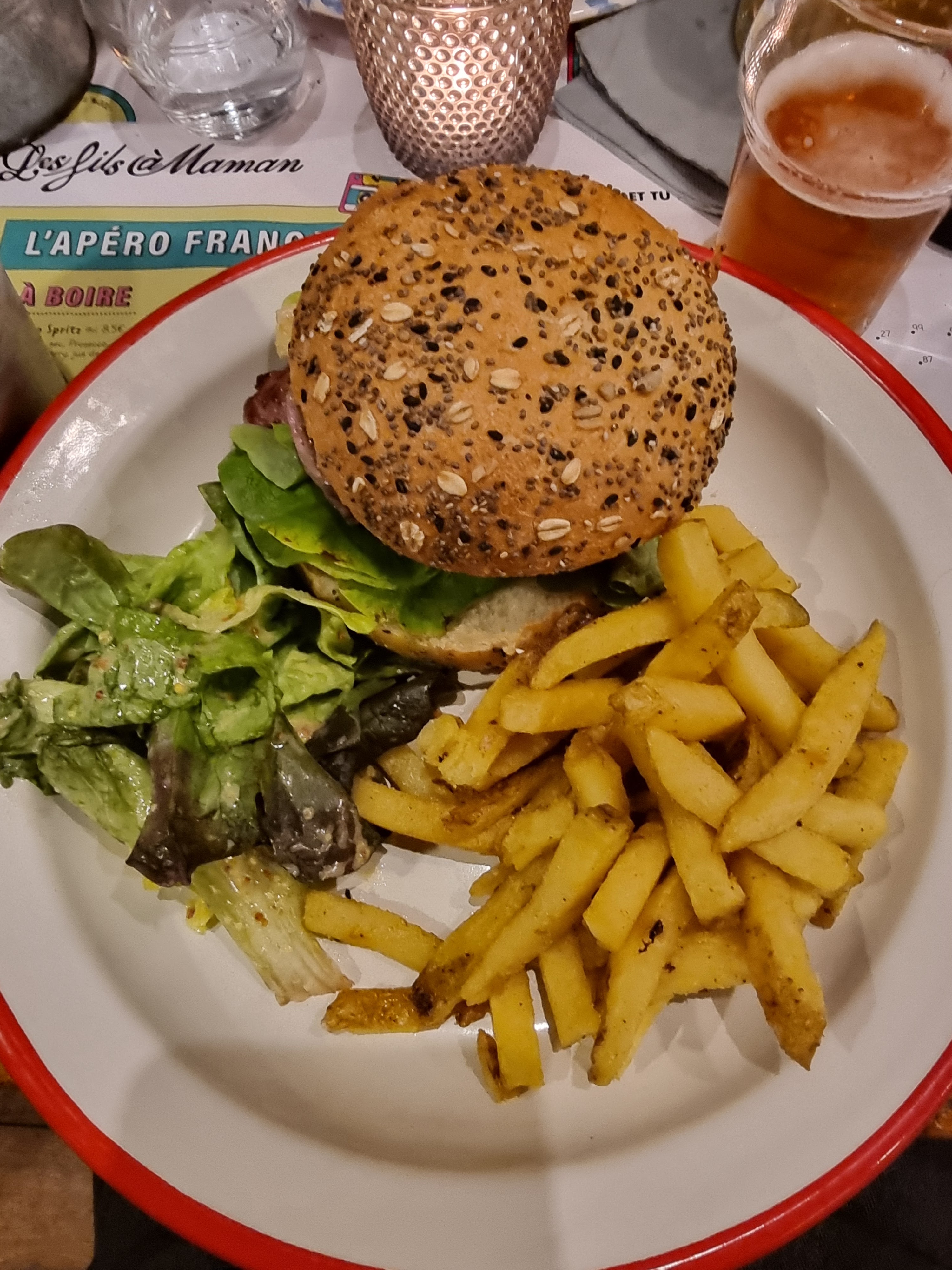 Expérience decevante. Nous sommes déjà allé dans Les Fils à Maman dans d'autres villes, mais ici le service n'est malheureusement pas à la hauteur. Un manager très méprisant, car lorsque j'ai informé que les frites n'étaient pas vraiment mangeables(car ils étaient épais comme des spaghettis et ressemblaient plus à des oignons frits), il affiche une attitude je-m'en-foutiste et ne propose rien en échange. Bilan final : grillade demandée saignante et servie bleue, sauce maison indisponible, accompagnement indigeste. Et oui monsieur, nous avons tout mangé car nous sommes contre le gaspillage, nous avions faim et nous avons payé pour ce repas, quand même!! Je vois que vous n'avez toujours pas compris le souci, dommage.