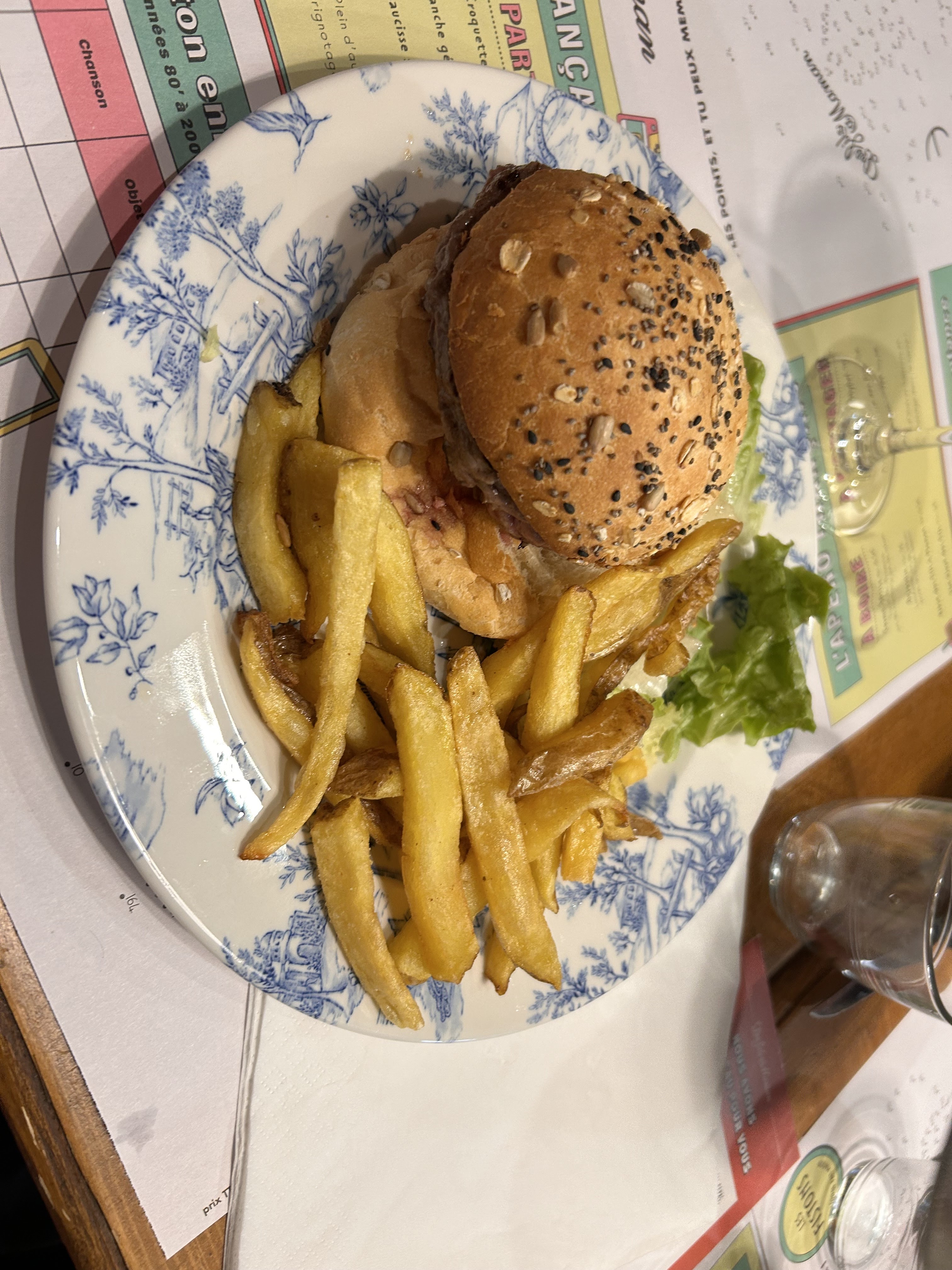 Je me suis rendu dans ce restaurant avec des amis. Le service était très agréable et dans une ambiance paisible. Cependant nous nous sommes rendu compte en regardant des photos qu’il manquait toute la garniture du Burger d’une amie. Les plats restent très bon mais il ne faut pas se fier aux menus distribués car les photos ne correspondent pas à la réalité. Les menus sont par ailleurs d’une belle typographie ce qui permet une lecture agréable. Il ne faut pas s’attendre à de la haute gastronomie mais est un bon restaurant pour faire une petite pause durant une journée touristique.