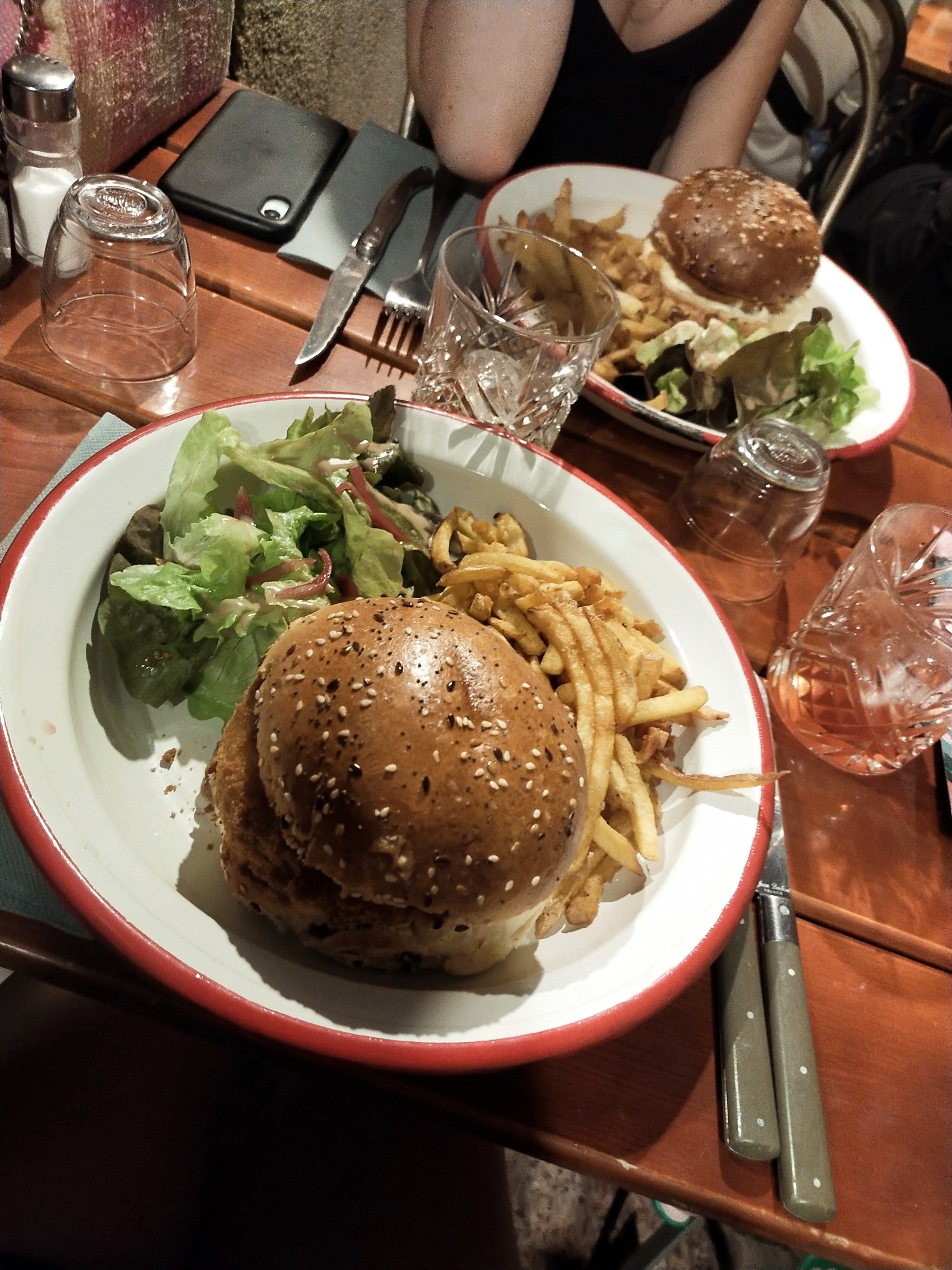 Nous nous sommes régalés avec salade, nuggets, frites et café gourmand 👌 La déco rappelle bcp de souvenirs! Très agréable