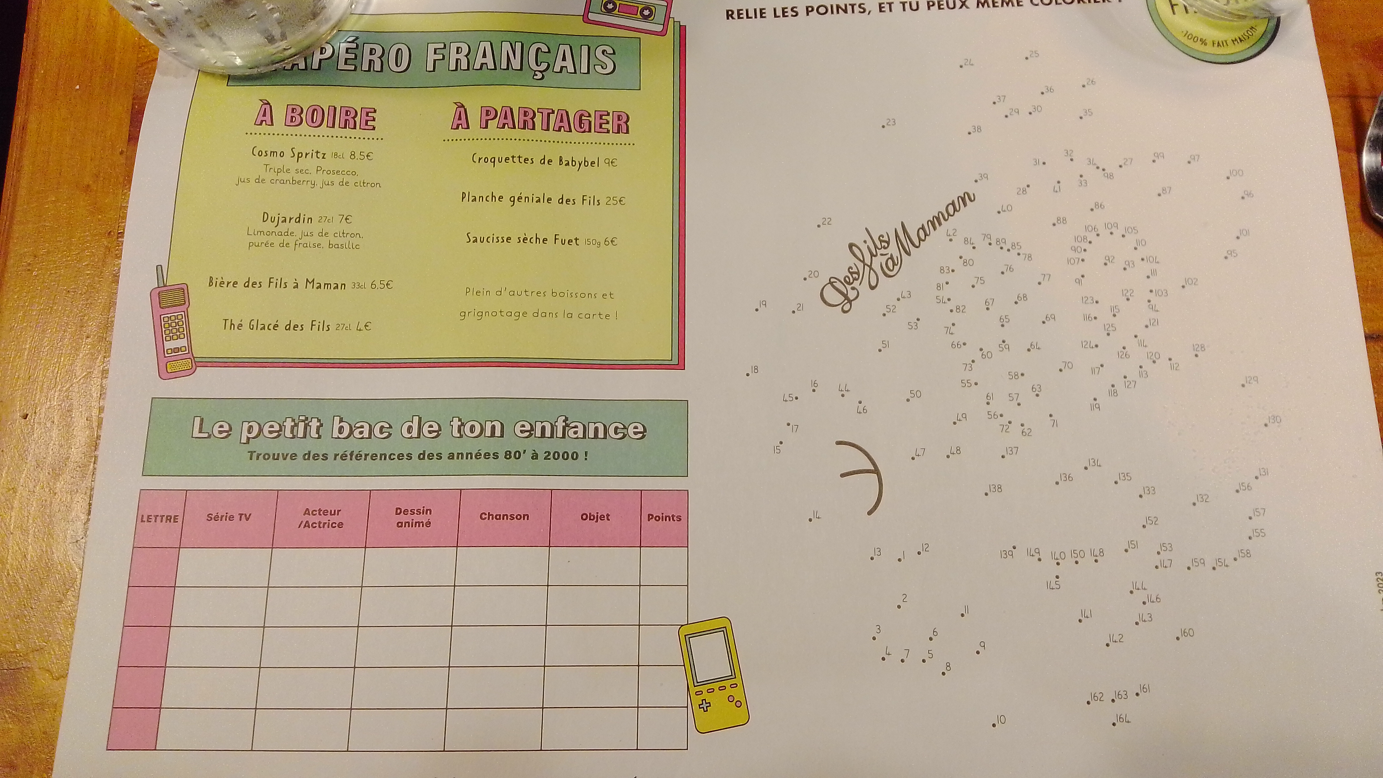 L'ambiance rétro, retour en enfance nous a beaucoup plus cela anime les discussions pendant le repas ! Le patron discute bien et tout le personnel est très agréable. Seul petit bémol la carte manque peut-être un peu de choix mais sinon très bien et très bon dans l'ensemble
