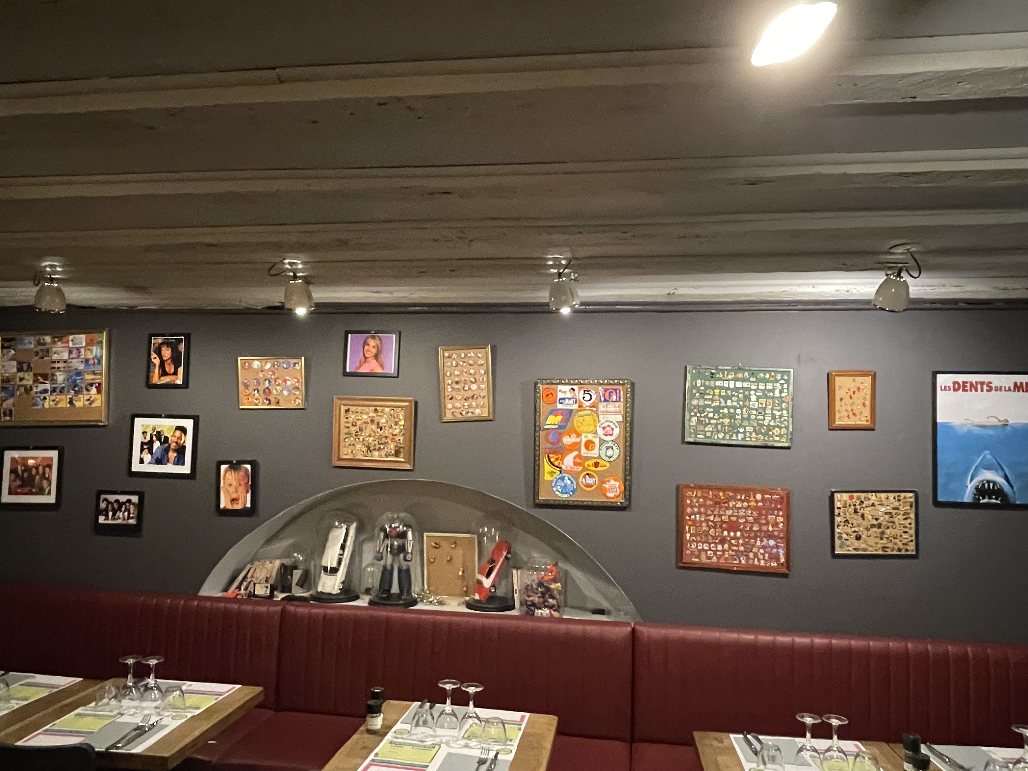 Ambiance et décor du lieu très sympa, c’est un bon retour en enfance Sur la nourriture par contre c’est pas ça. Plat sec, sans goût, burger quasi vides, quantités très réduites et le tout assez cher Allez y pour un apéro mais pas pour un repas