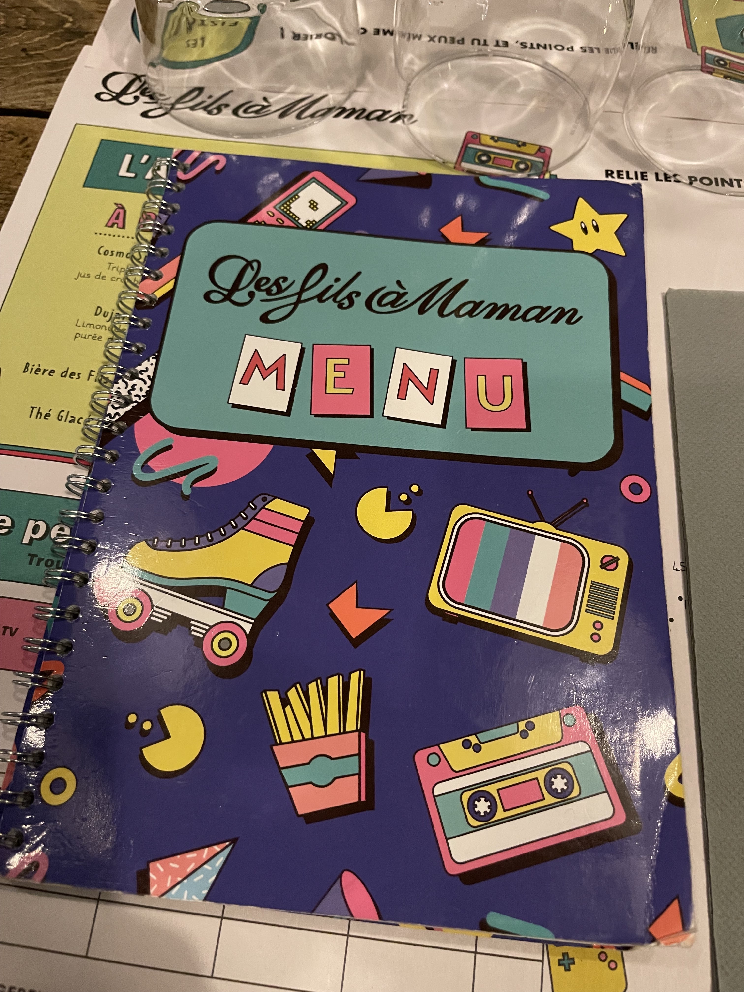 Je recommande ce Fils à Maman. L’histoire de cette bande de fou de fils à maman est bien drôle. L’ambiance vint. années 90 c’est vraiment sympa. Le menus sur cahier de texte etc... sinon le service et la qualité de la nourriture est correct. Peut être un effort à faire sur les frites. Mais sinon c’est top