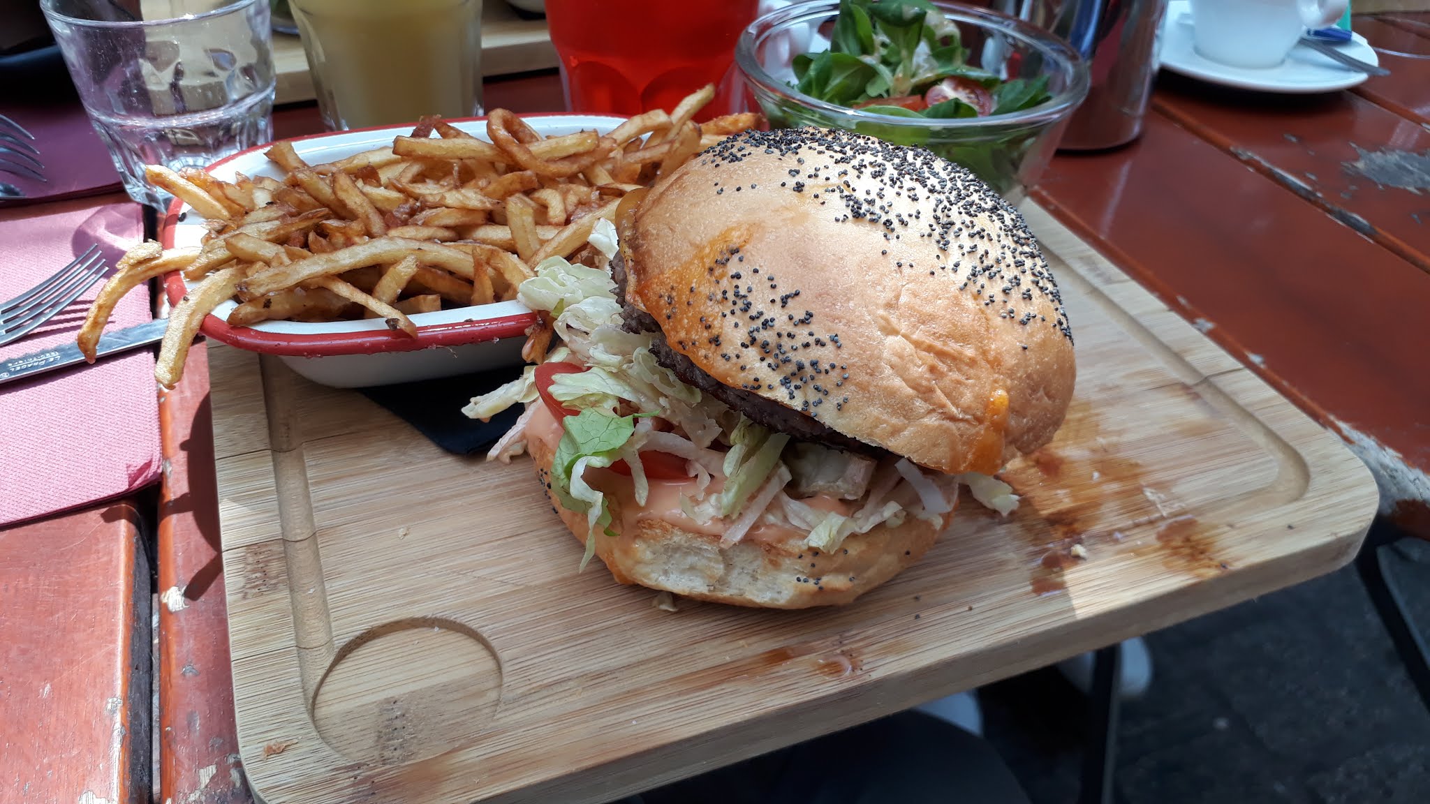 Restaurant très sympa avec une équipe très cool. Burger correcte et de bonne taille. Un peu moins fan des frites maisons. Par contre le dessert, top ! Une agréable découverte 🙂