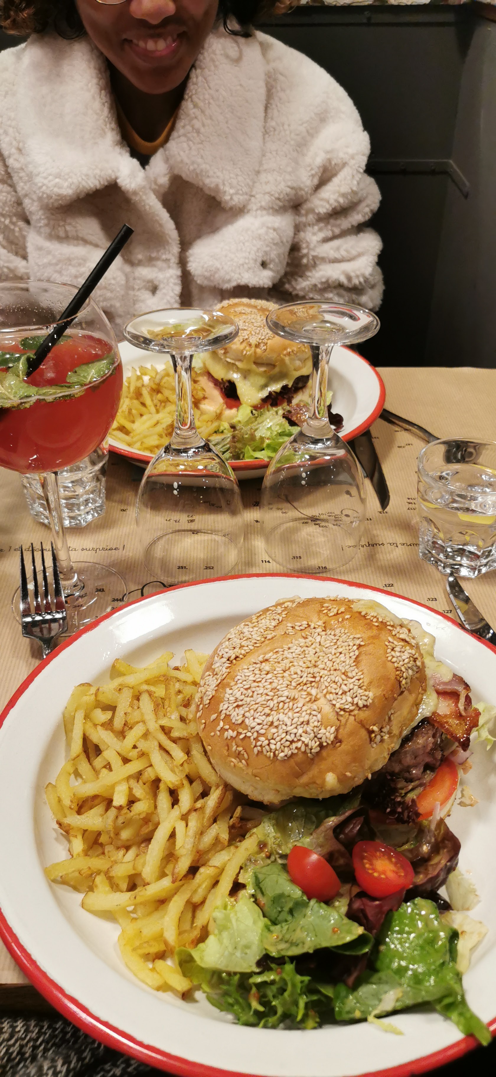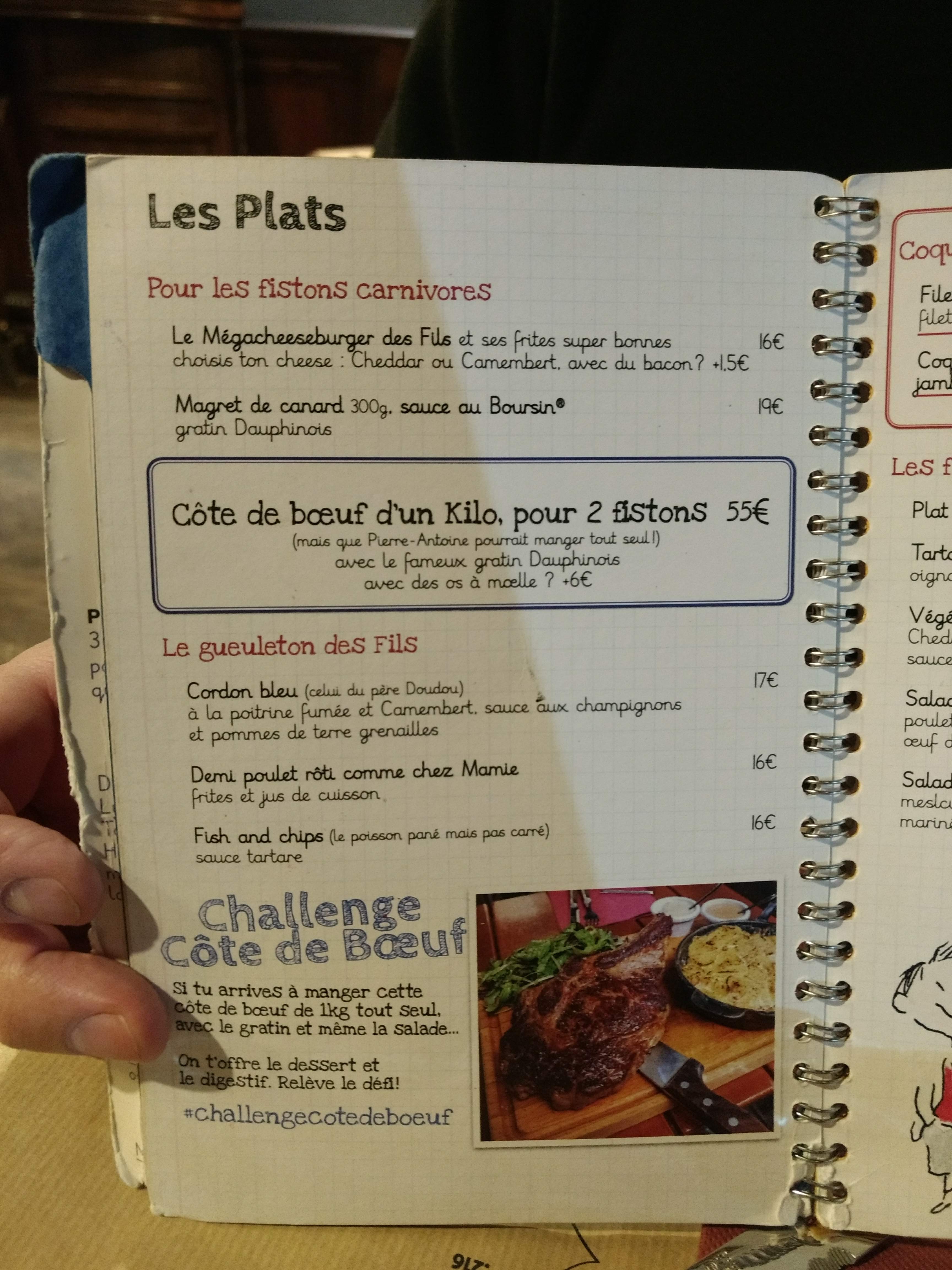Concept vraiment top ! J'ai adoré la carte des menus très originale . J'avais choisi Le megacheeseburger des Fils et ses frites super bonnes , un vrai régal et une assiette copieuse. En dessert le tiramisu au kinder , absolument délicieux . Personnel agréable, je recommande. Attention la salle est petite donc pensez à réserver à l'avance ! Seul petit point négatif, il faisait très chaud.. La clim ne serait pas de refus quand on mange des plats si gourmands.