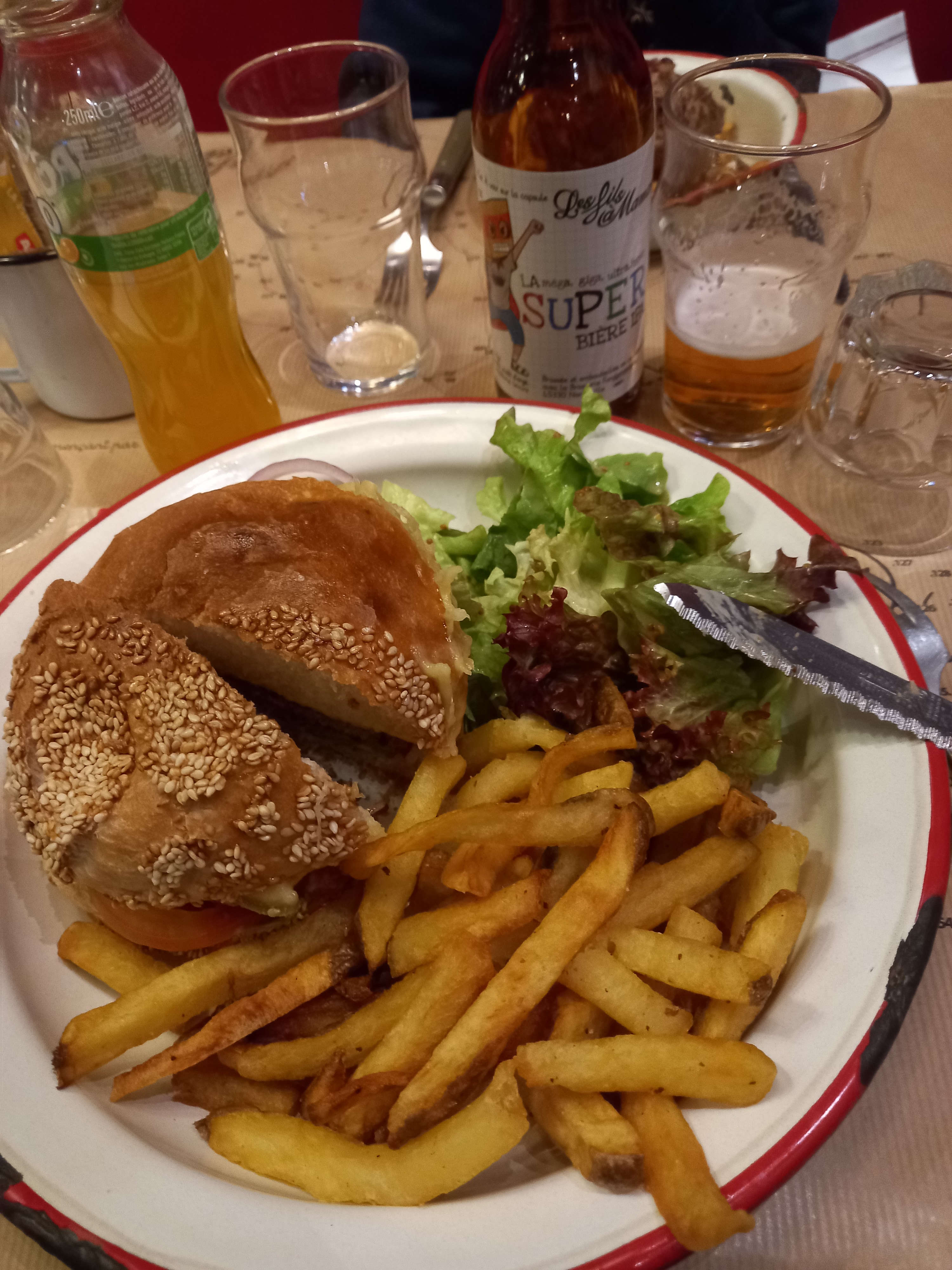 Très bon restaurant le service est chaleureux, les boissons arrivent super vites tout autant que les plats, et que dire de la générosité de nos plats bcp de frites et de salades, puis le pain du burger est soit fait maison soit vient d'une boulangerie que dire... Cela fait toute la différence ! Je vous recommande vivement ce restaurant !