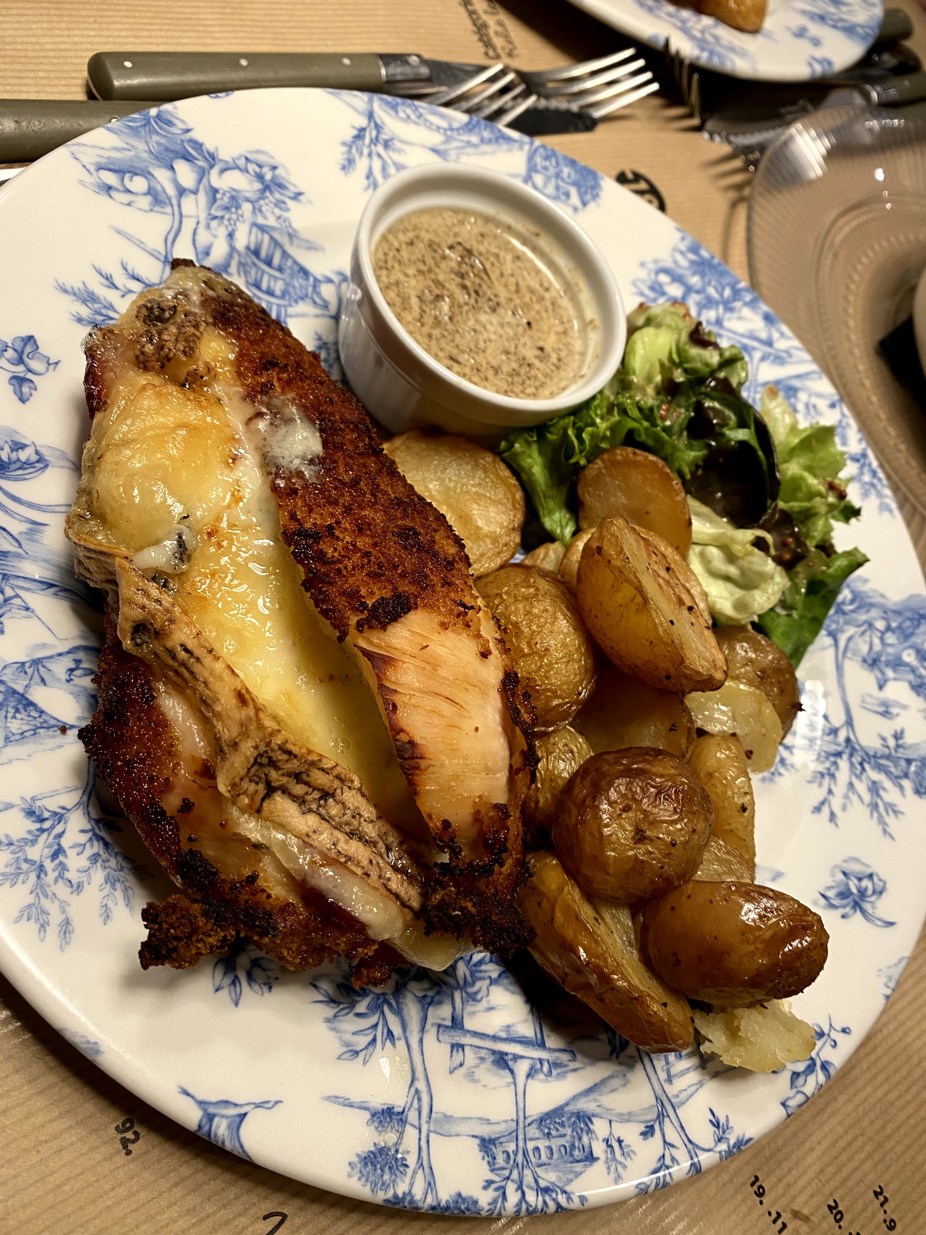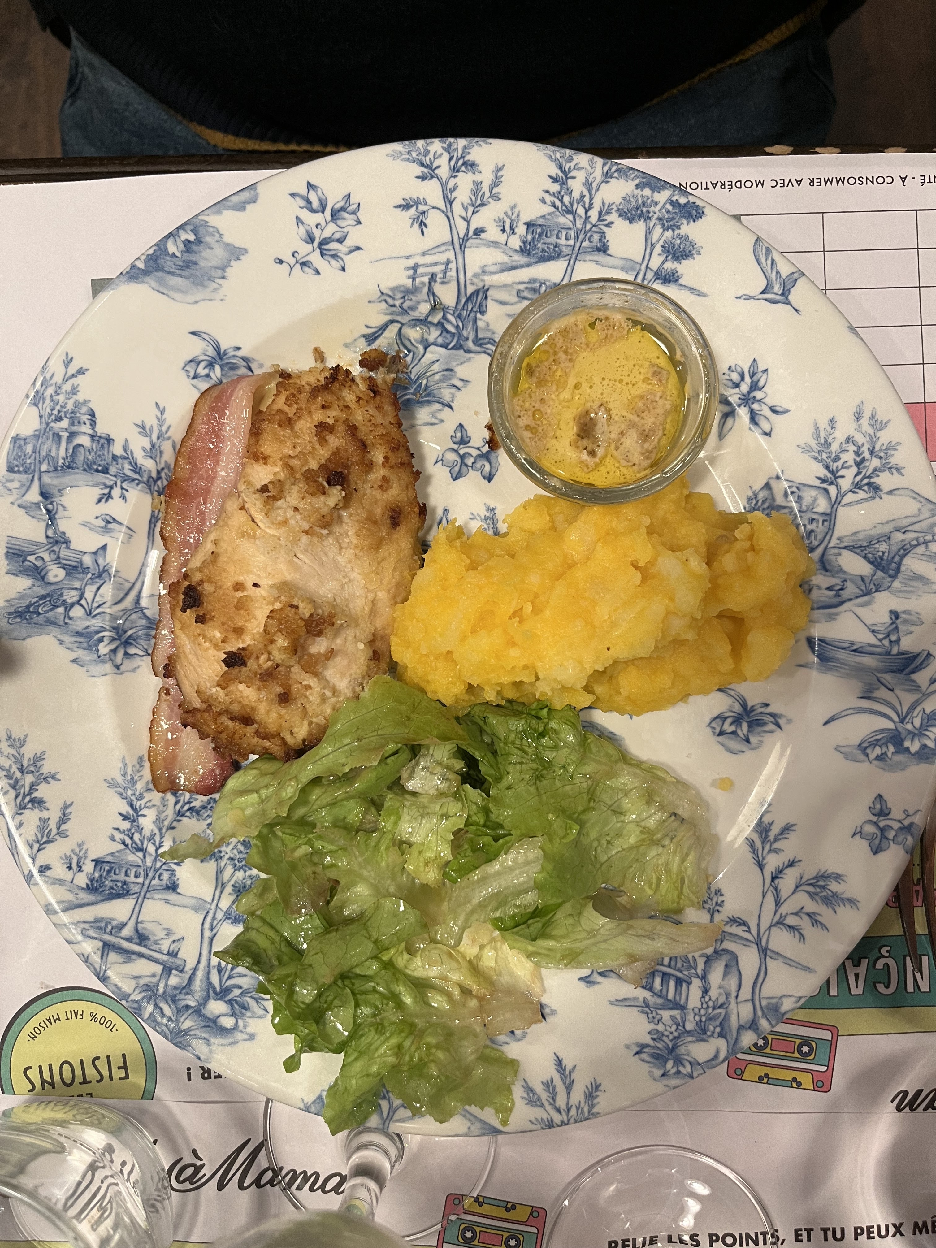 Cordon bleu moyennement savoureux et arrivée presque froide, salade croustillante par endroits, sûrement une erreur de parcours c'est dommage