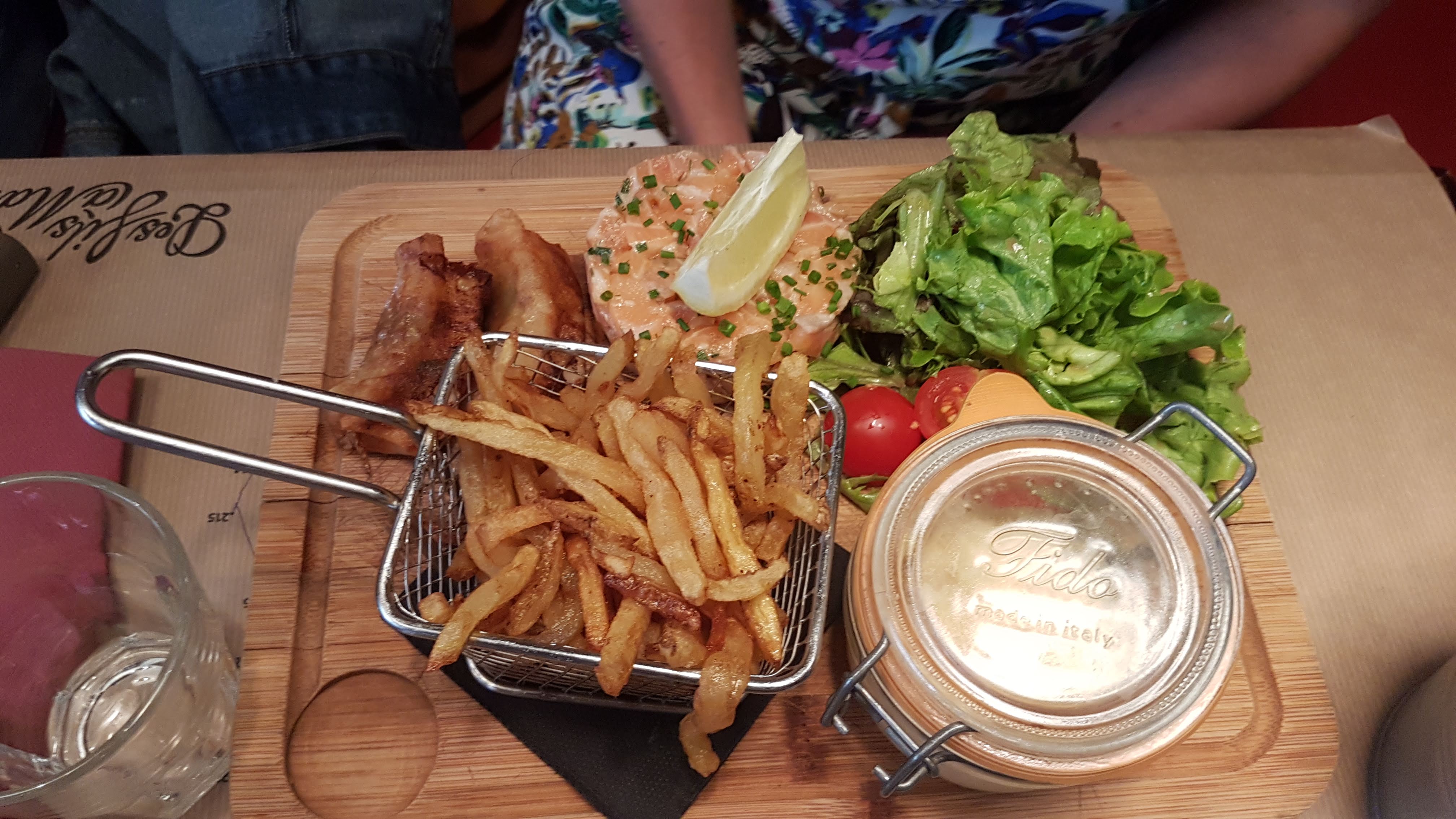 Une soirée spéciale ; d'abord, une attente de 45 min avec mon amie pour une entrée frugale (voir photo) (avec une simple erreur, la sauce manquait) Après un poil plus d'une heure, les plats arrivent, plats corrects bien que froid, si ce n'est à l'exception d'un petit invité (en photo ci dessous) Au passage, on me renverse la salade sur mon sac (les tâches ne partent pas, il est fichu) Heureusement, on nous propose un geste commercial pour équilibrer (boissons offertes) Je ne sais pas si c'est une succession de malencontreuses malchances, ou si cela reflète vraiment la gestion du restaurant. Pour le prix, je m'attendais à une expérience plus plaisante Merci à la serveuse qui a été compréhensive lors du service.