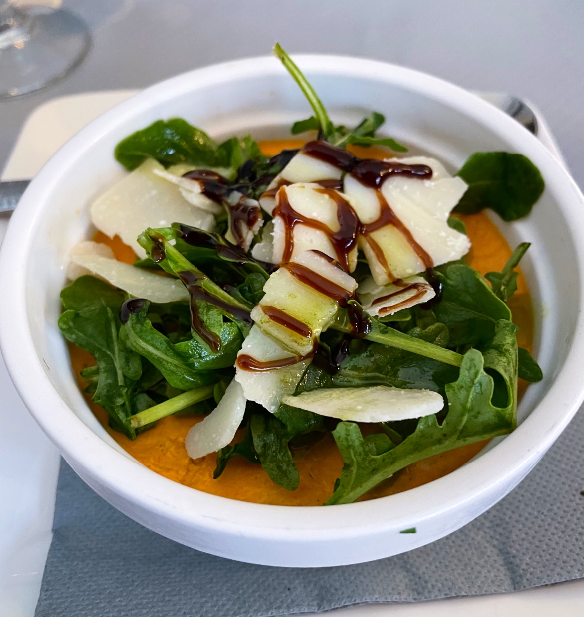 Après 10 jours passés à visiter des villes charmantes et pleines de gens sympathiques le long des côtes françaises, de retour en Espagne, ça semblait bien de faire un détour par ce restaurant, comme cela semblait appétissant pour le dîner, il était un peu tôt à 18h15, mais bon, nous a pu s'adapter et sur Google a montré qu'ils fermaient à 21h30. En entrant, on nous a dit qu'ils n'étaient pas ouverts (toutes les lumières étaient allumées, et plusieurs personnes à l'intérieur avec toutes les tables dressées), nous avons été laissés comme des imbéciles pour avoir transformé une journée de 6 heures en voiture en 7 heures, un total auquel nous nous préparions à faire face. continuer le voyage, et nos couples avaient besoin d'aller aux toilettes, ce à quoi ils ont répondu que c'était uniquement pour les clients, de toute façon, ils ont demandé une bouteille d'eau à emporter (3 €) et l'un d'eux est passé par là, et quand le deuxième est passé par là, il a dit d'acheter une deuxième bouteille car s'ils veulent tous les deux aller aux toilettes, il faut qu'ils soient tous les deux clients, résumé, 6 € pour faire pipi après un détour 1 heure entre le Mont Saint Michel et Arcachon. Je ne doute pas que la nourriture soit délicieuse, mais avec autant d'endroits parmi lesquels choisir, je ne mettrais jamais les pieds dans cette ville (à moins de vouloir visiter un domaine viticole) qui est assez sombre et sans âme, encore moins dans ce restaurant.