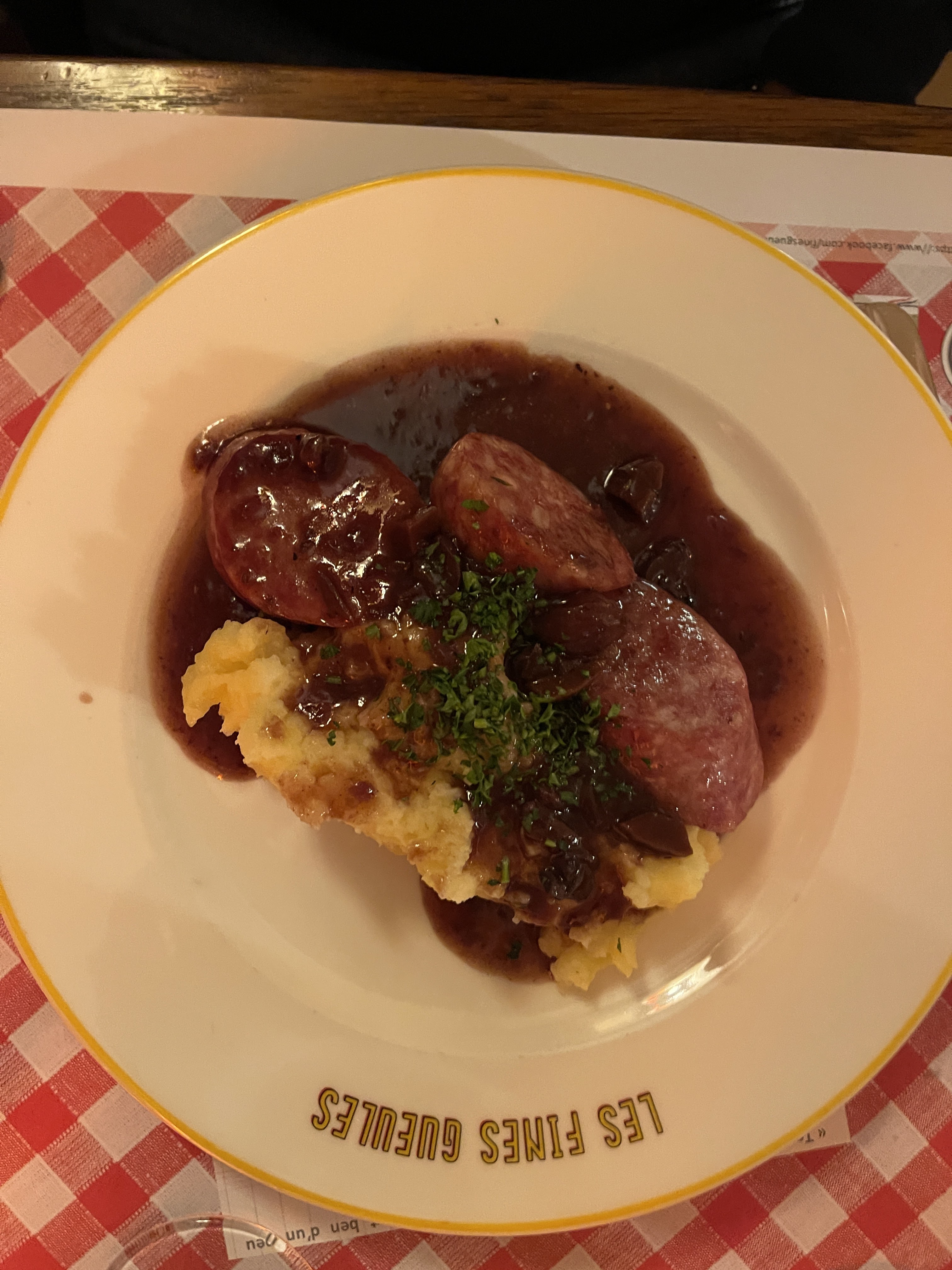 Certes, le service téléphonique pour créer une réservation était un cauchemar. Réservé à l'origine pour 2 personnes, un tiers souhaitait se joindre à nous. J'ai rappelé immédiatement, on m'a dit que je ne pouvais tout simplement pas le faire, puis j'ai annulé notre réservation initiale ! Après quelques verres dans un pub à proximité, nous avons décidé de tenter notre chance et sommes allés à 21h30, tous les trois sans réservation, et avons pu nous asseoir pour un repas de bouchon traditionnel qui en valait la peine. En personne, le service était fantastique. Donc dans l’ensemble, ça vaut le coup.