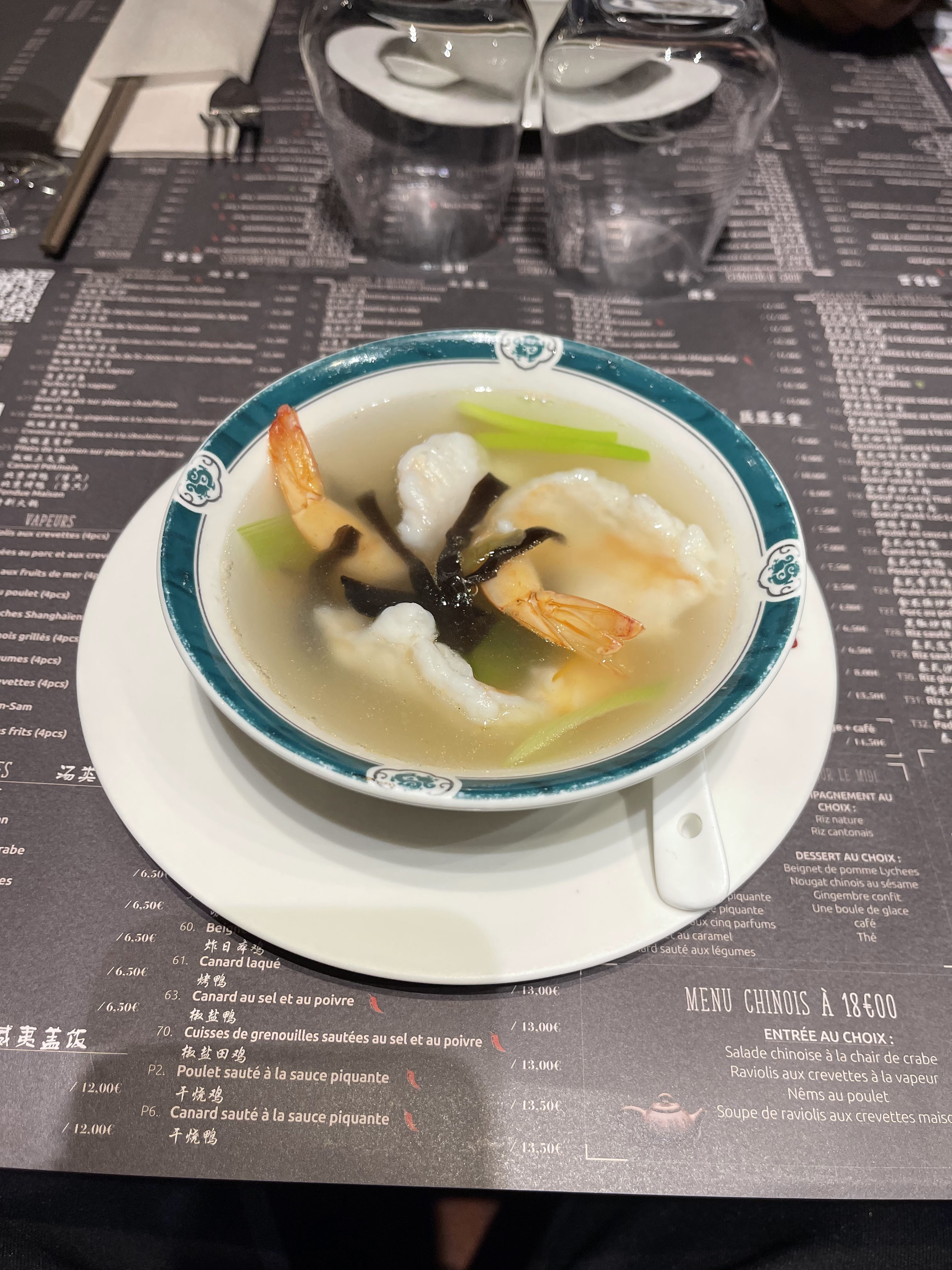 Horrible Endroit bruyant. Crevettes et soupe très salées, sans doute pour dissimuler un léger gout d’eau de javel. Nouilles servies froides. Suite à notre remarque, elles nous ont été re des réchauffées au micro onde, resservies toutes molles. Le porc caramélisé n’était que des morceaux de gras pas assez cuits (j’ai conservé une photo de ce plat). Ne pas cuire suffisamment du porc expose le consommateur à des risques d’intoxication. Le plat n’a pas été terminé et signalé au serveur. Pour finir sur une note sucrée, les perles de coco. Je me brûle la langue dés la première bouchée. Une fois refroidies, elles collent a l’assiette… c’est immangeable. Au moment de payer la note le serveur me dit qu’il me fait cadeau des perles de coco… en même temps je n’ai pas pu les manger, je lui fais savoir. Il me répond que j’aurais dû lui dire avant Face à sa mauvaise fois je lui fais remarquer qu’il aurait dû vérifier la conformité de ses plats avant de les servir. Il change d’avis et me fait payer les desserts. Je l’informe que je ferai un compte-rendu rendu de cet horrible moment passé dans son établissement sur internet. Il relève mon nom sur ma carte bleue … représailles ? 100 euros pour 2 repas immangeables.