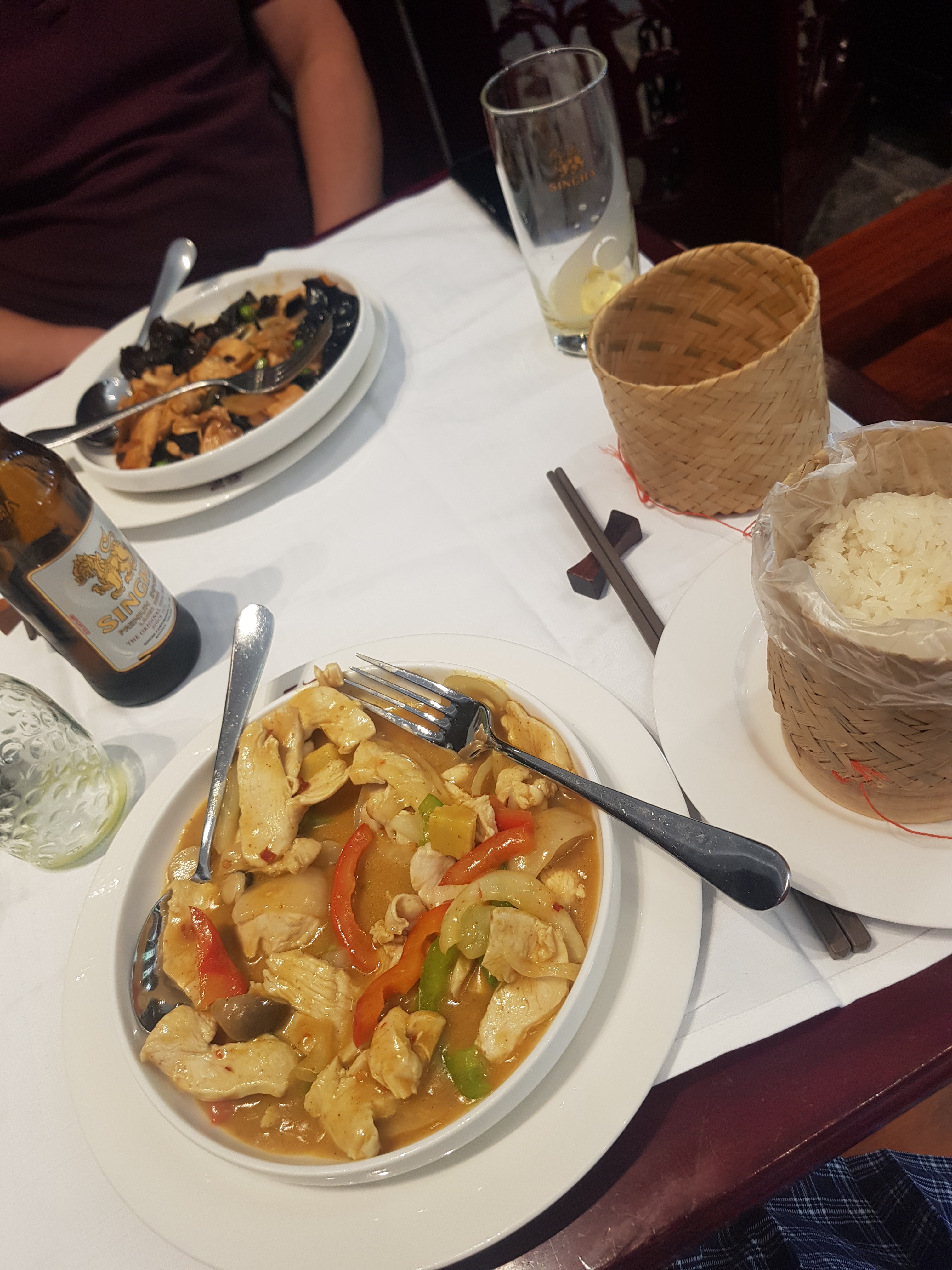 J'étais déjà venu il y a quelques années sans que cela ne me laisse un souvenir impérissable. Retour aujourd'hui pour changer : entrée de fritures banale avec 2 sauces totalement catastrophiques, moins bonnes que les sauces industrielles du commerce, un comble. Les nems au porc étaient plus que médiocres. On enchaîne sur des travers de porc au caramel, durs, gras et dans une sauce vinaigrée ignoble qui n'avait rien de caramélisé, avec un riz gluant à la hauteur lui. La bière Singha était bonne 😜 l'addition à 35 euros beaucoup moins. Si vous êtes amateurs de cuisine asiatique et /ou connaisseurs passez votre chemin. Le service en revanche est excellent mais ce n'est pas l'essentiel !!!