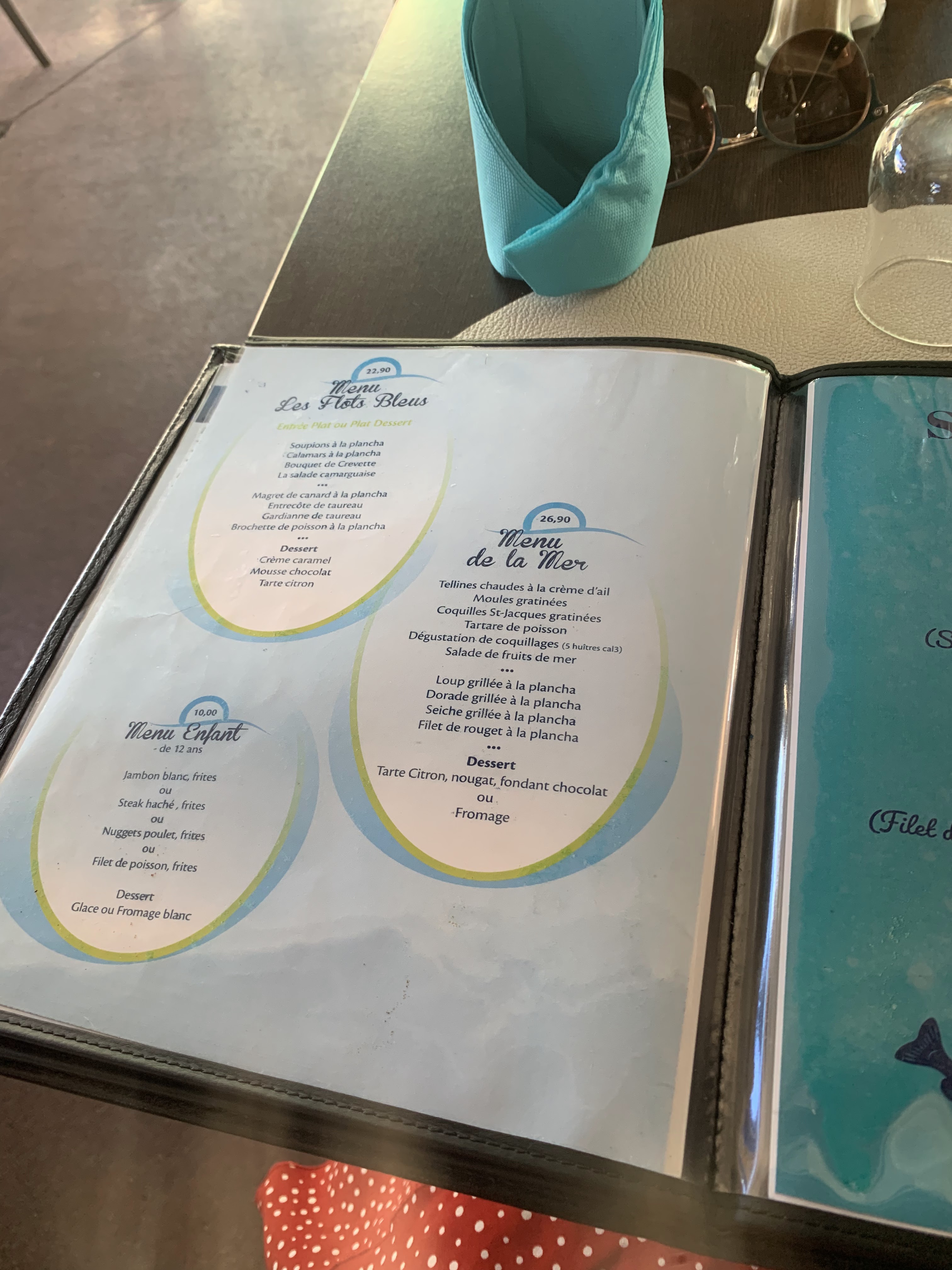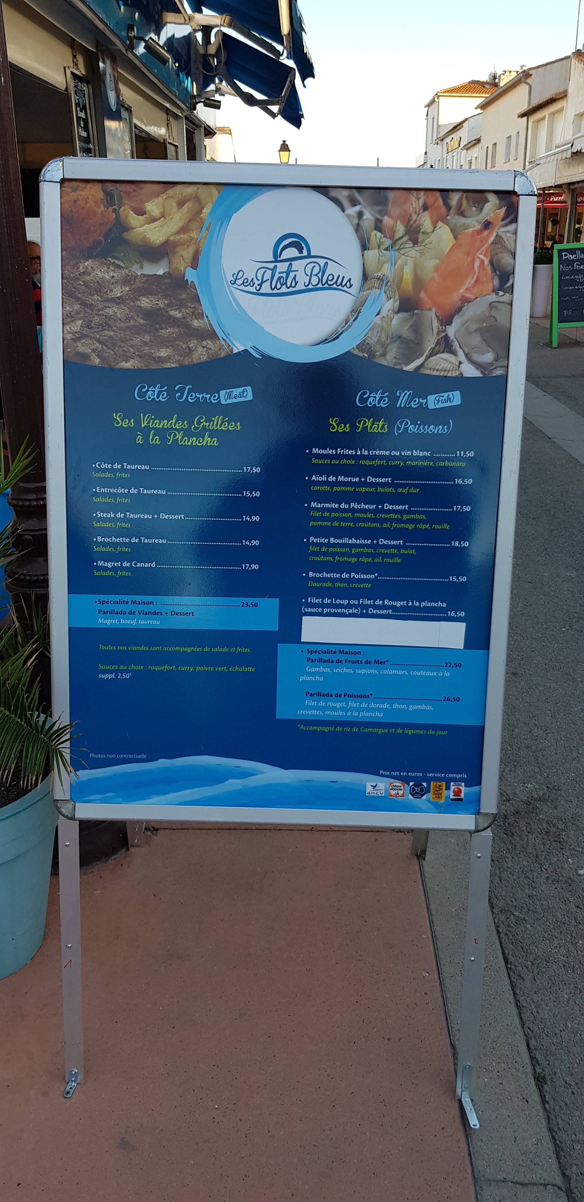 Je les ai presque tous fait les resto dès saintes... Mais ce soir aux flots bleus. aïoli.. et daurade un régal.. ça changes de certains établissements.. Déplus l'esprit sont plus que raisonnable. Je recomande vivement.. Ps: je suis moi meme dans la restauration .. Bravo l équipe!! A bientôt