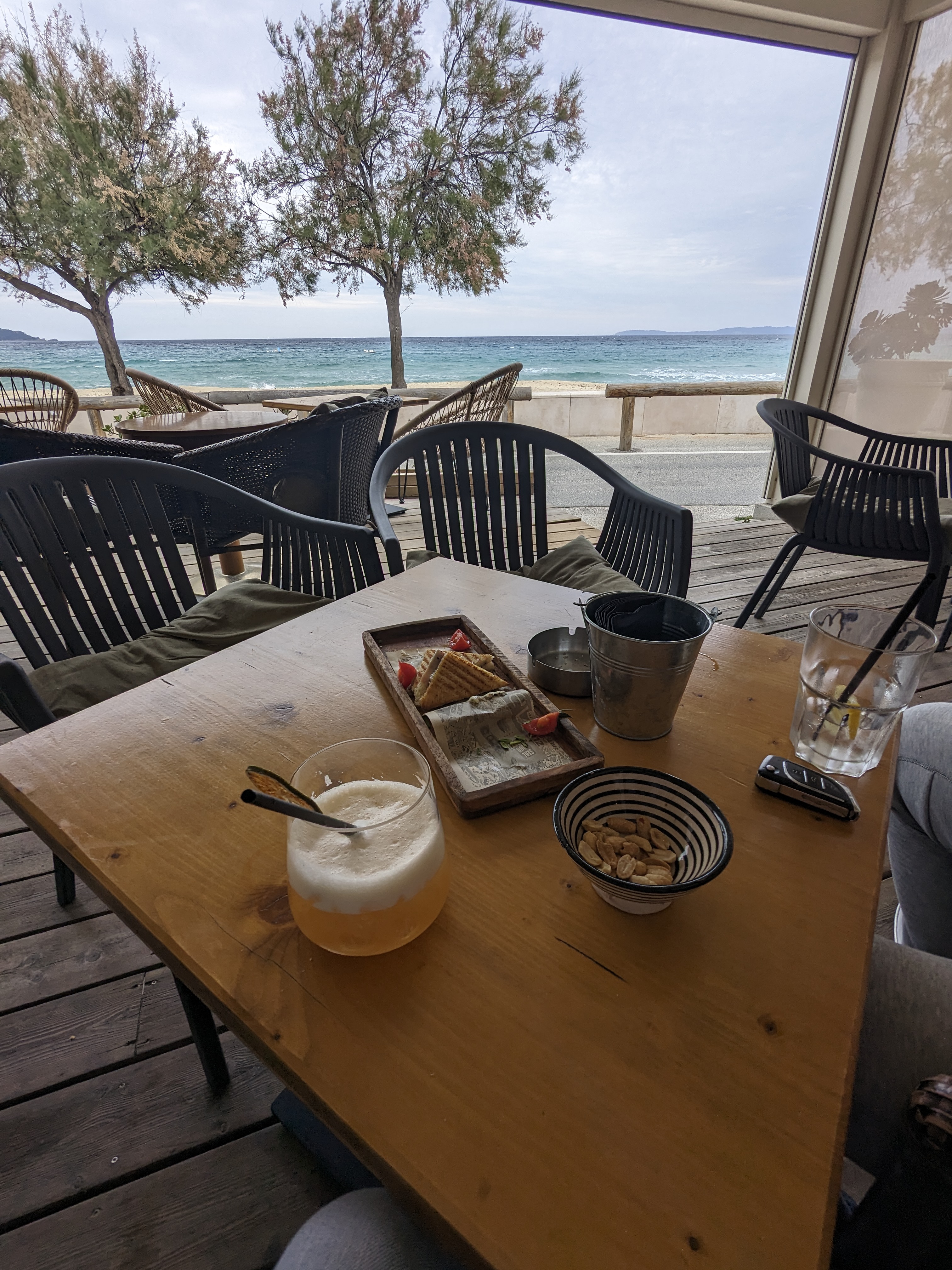 Belle vue puisqu’en bord de mer même si c’est au bord d’une route mais les prix sont élevés ... 5,5€ un martini blanc... 😱 So expensive !